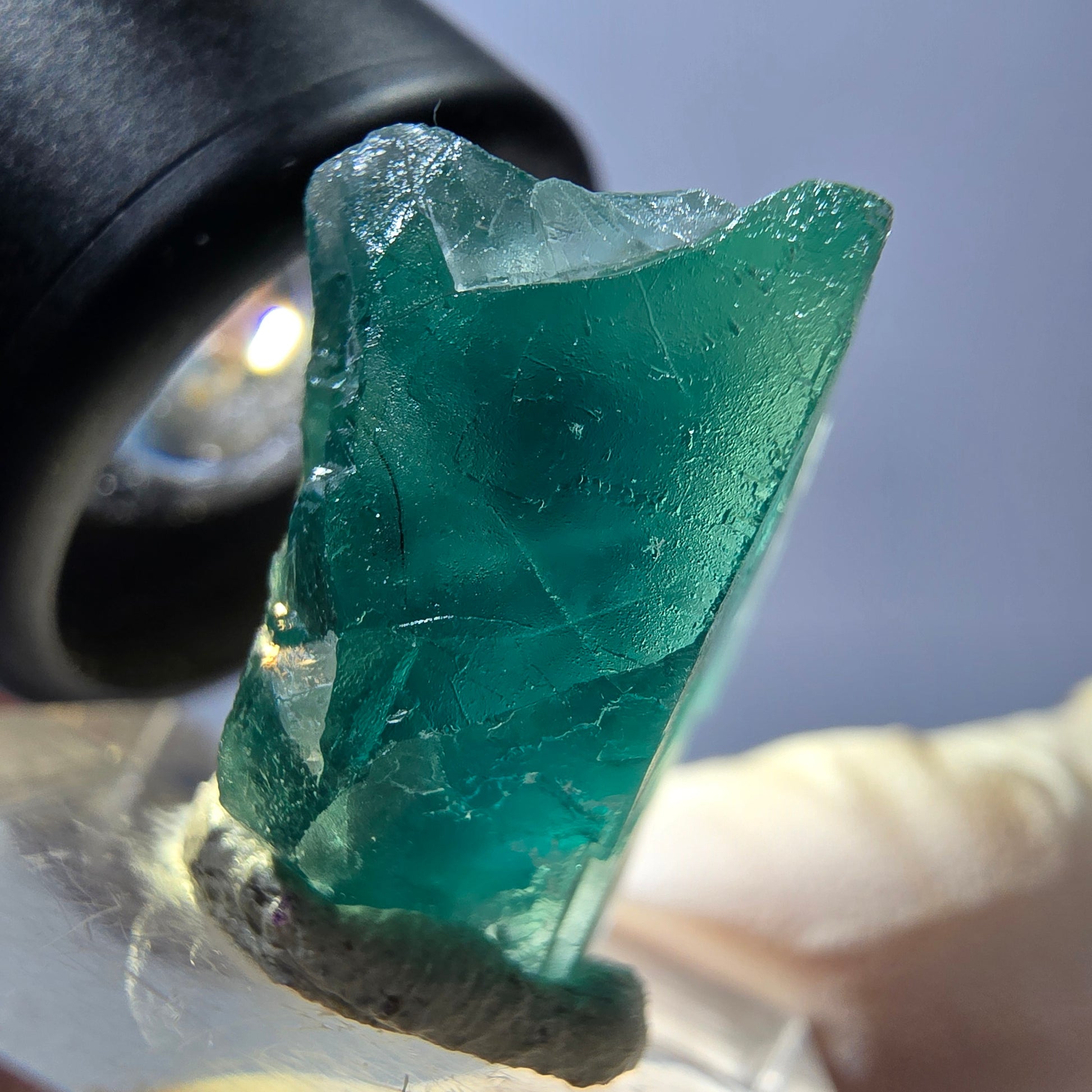 Entdecken Sie unseren klaren, grünen, transparenten Phantom Fluorit Würfel, der mit seiner einzigartigen kubischen Kristallform begeistert. Dieser wunderschöne Kristall kommt aus Okorusu, Namibia, und besticht durch seine parkettierte Oberfläche sowie die faszinierenden Phantome, die im Inneren des Würfels zu sehen sind.