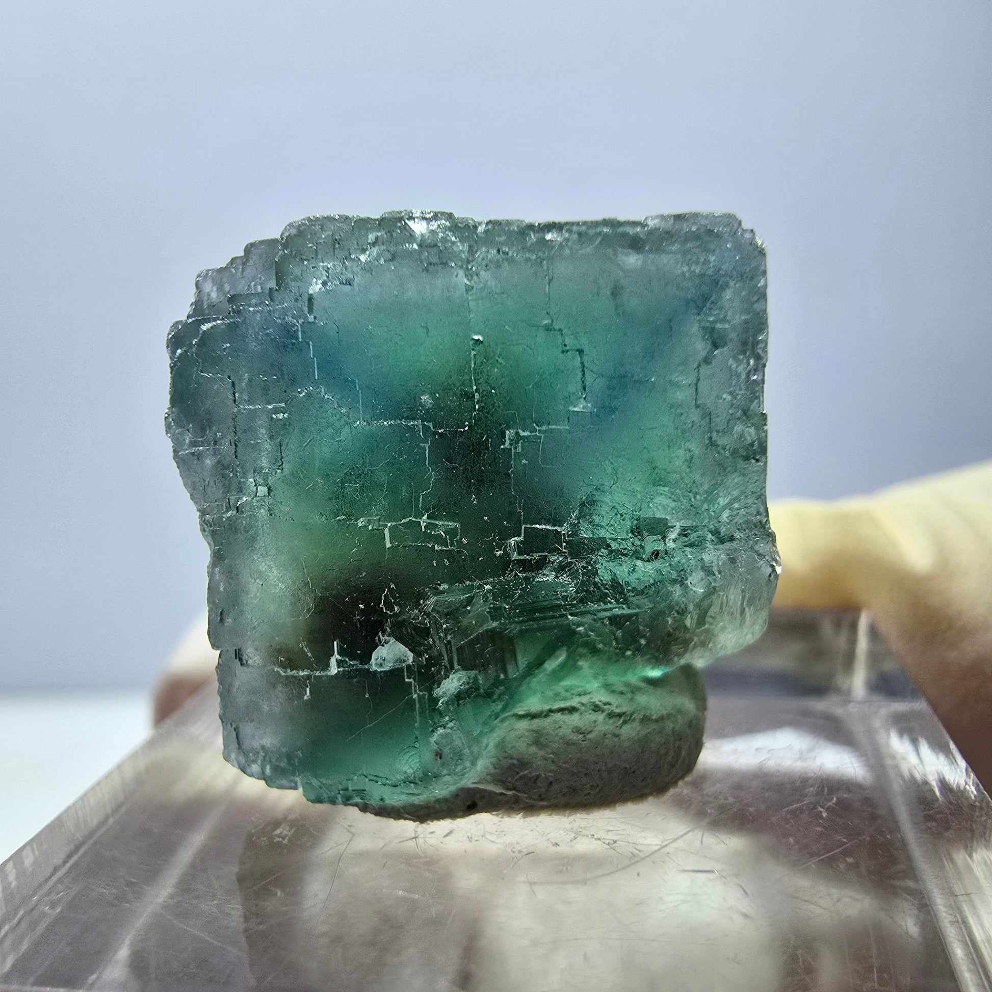Entdecken Sie unseren faszinierenden klaren Phantom Fluorit Würfel, ein einzigartiger Kristall, der durch seine transparente grüne Farbe und die eindrucksvollen Phantome im Inneren besticht. Mit einer kubischen Kristallform und einer parkettierten Oberfläche ist dieser Kristall nicht nur ein Blickfang, sondern auch eine wunderbare Ergänzung für Ihre Sammlung oder als dekoratives Element in Ihrem Wohnraum.