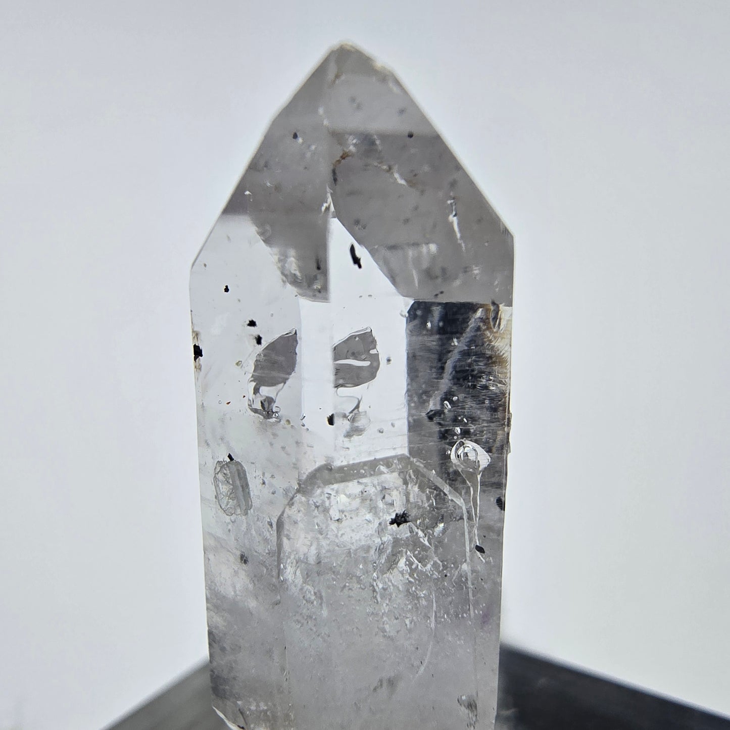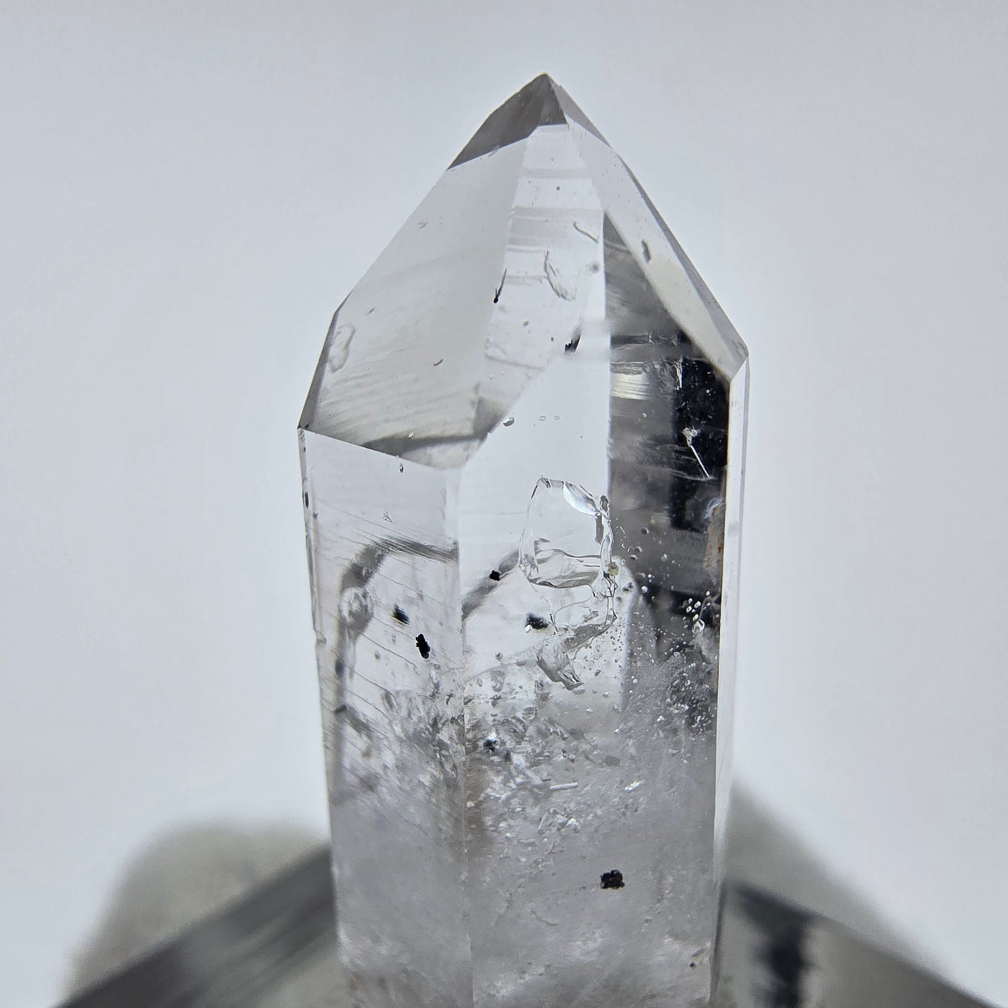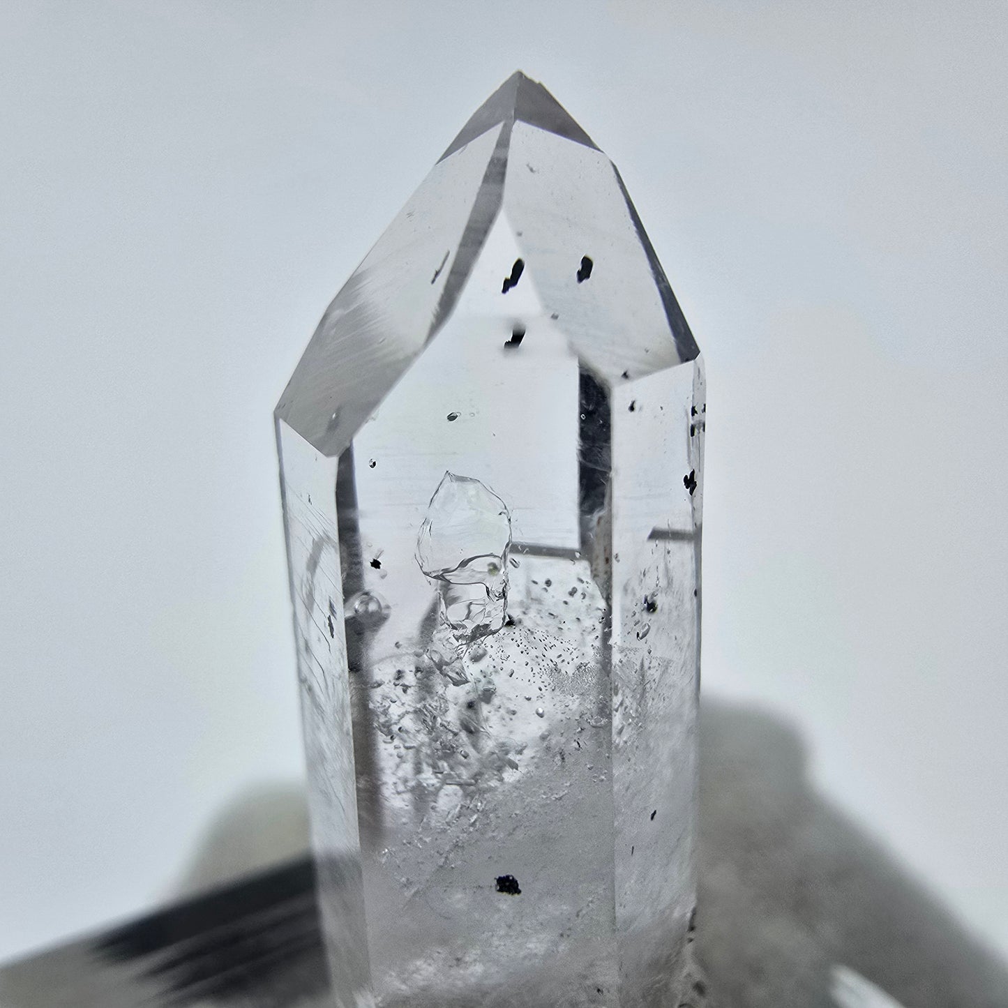 - Einzigartige Merkmale: Seltene klare Kristallspitze, schwarze Hämatit Einschlüsse, schöne Phantome