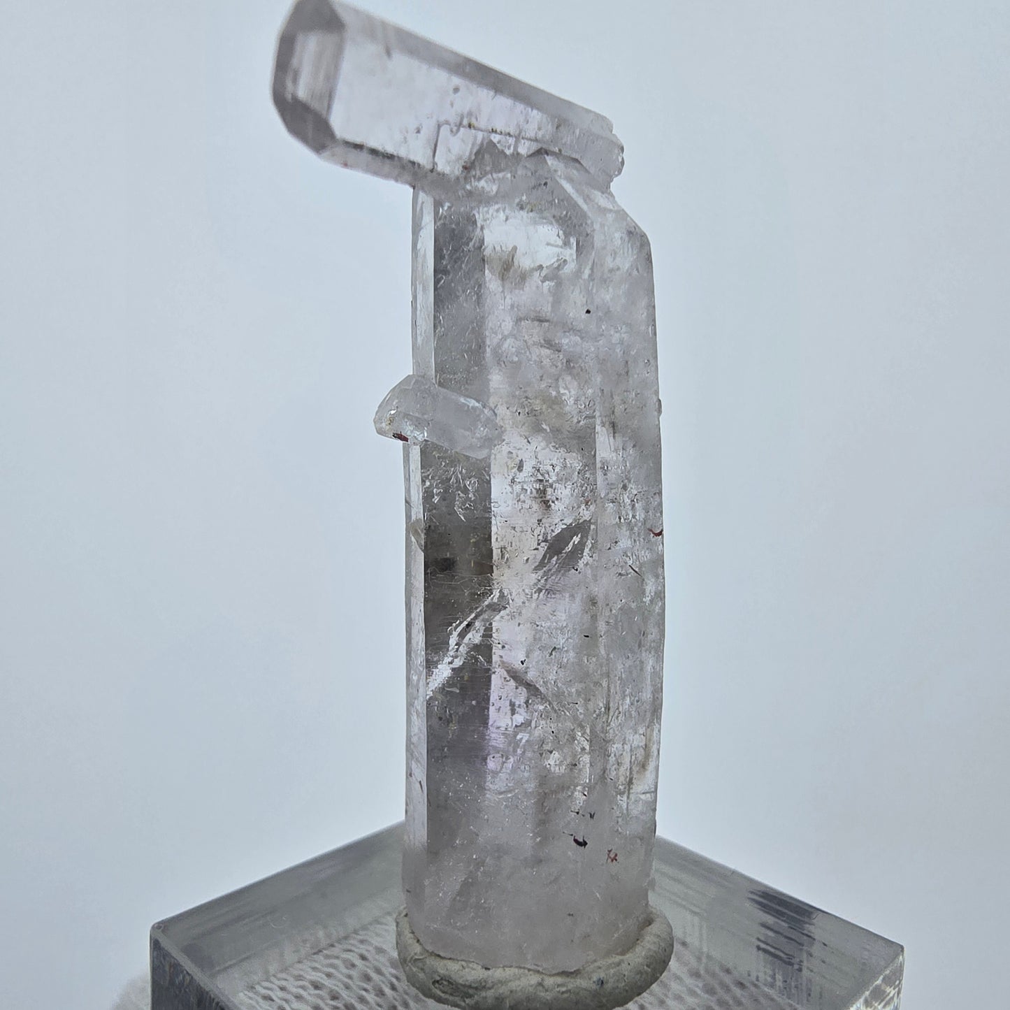 Mit kompakten Maßen von 43*22*11 mm und einem Gewicht von nur 11 g ist dieser Quarz ein beeindruckendes Sammlerstück, das in keiner Mineralienkollektion fehlen sollte. Gefunden wurde dieser spezielle Kennerstein in der Streep Mine in Goboboseb, Namibia.