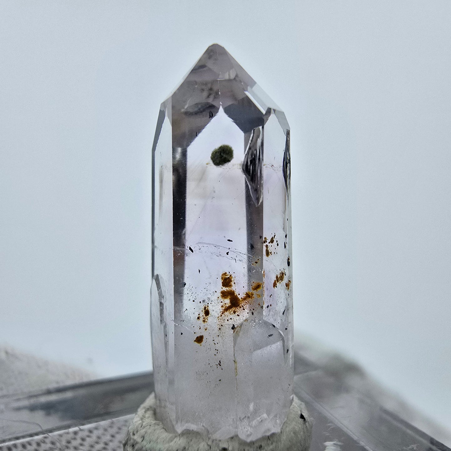 Mit einem Maß von 25x10x8 mm und einem Gewicht von 2,9 g ist dieser Kristall kompakt und leicht zu handhaben. Er stammt aus der Streep Mine in Goboboseb, Namibia, einem Ort, der für seine hochwertigen Mineralien bekannt ist.
