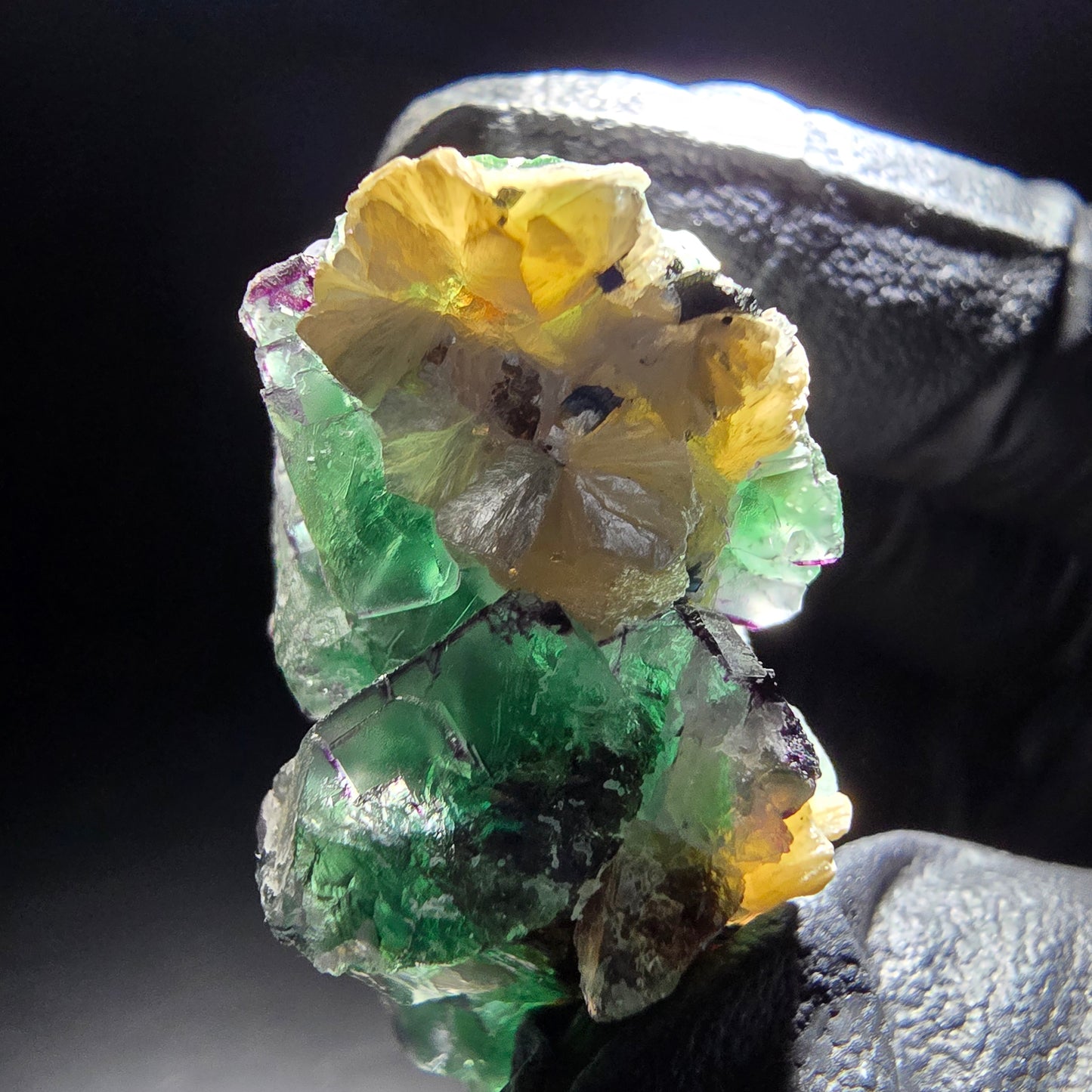 Zusätzlich zu den beeindruckenden Fluorit-Kristallen finden Sie auch Muskovit Kristalle und Schörl Turmaline, die der Stufe eine besondere Note verleihen. Die harmonische Kombination dieser Mineralien macht dieses Stück zu einem einzigartigen Sammlerstück.