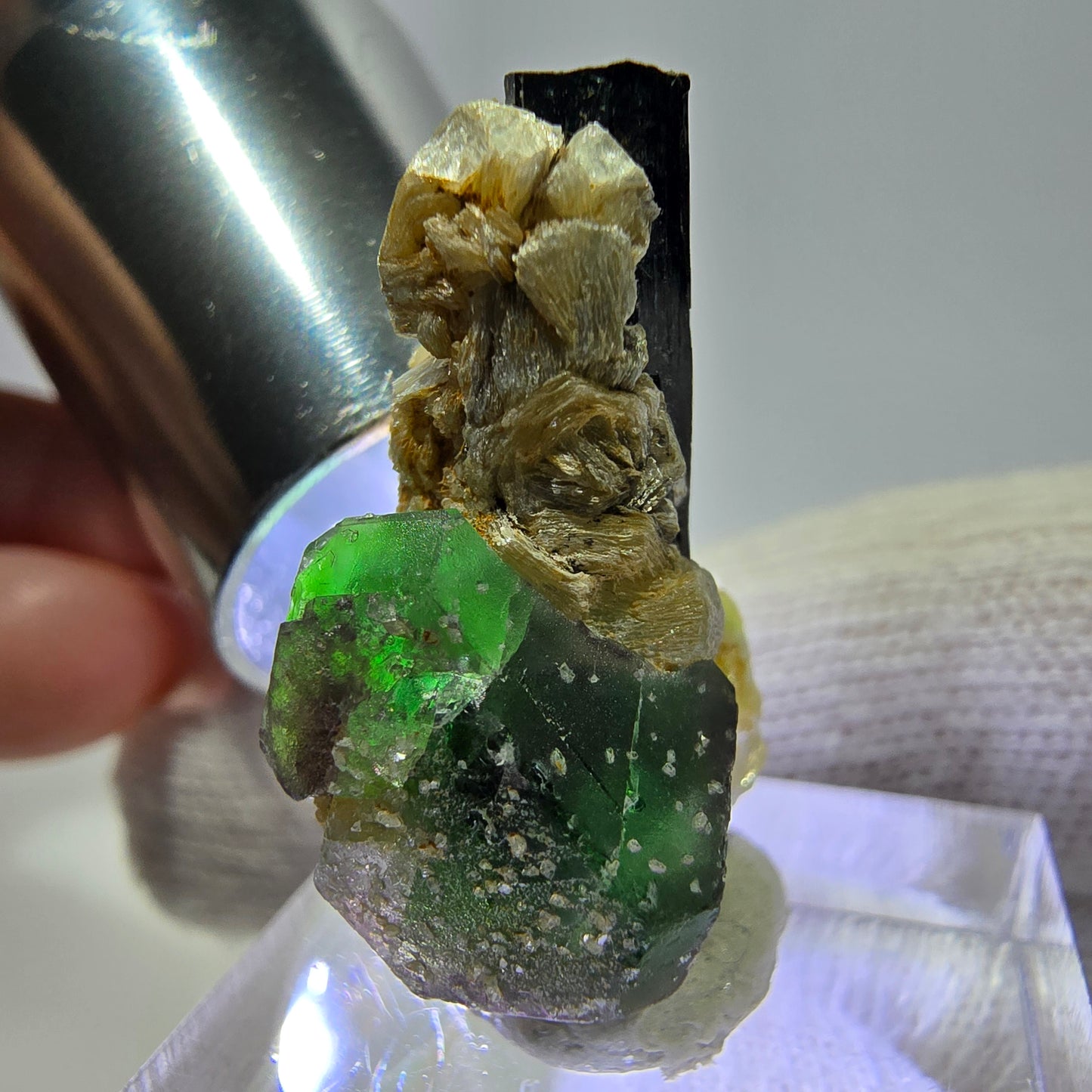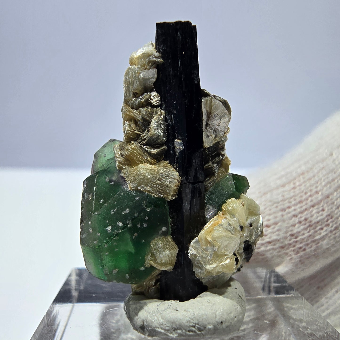 Phantom Fluorit Würfel, Muskovit, Schörl Turmalin Stufe Erongo, Namibia 29*19*17mm