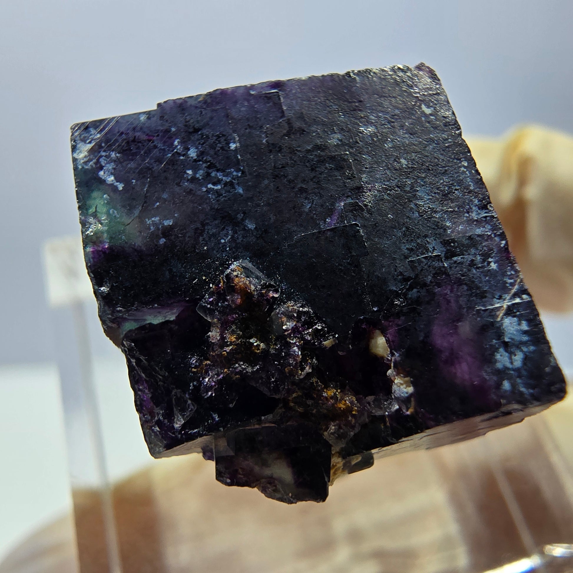 Entdecken Sie unseren beeindruckenden Phantom Fluorit Würfel in grün-lila, ein wahrhaft außergewöhnlicher Kristall mit einer kubischen Form und einer kunstvoll parkettierten Oberfläche. Das transparente Design ermöglicht es, die faszinierenden Phantomstrukturen im Inneren des Kristalls zu bewundern, die diesem Stück seine einzigartige Identität verleihen.