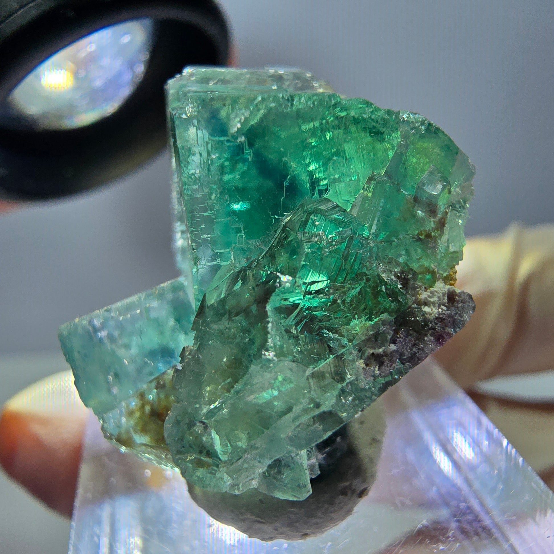 Die Maße der Fluorit Würfel Stufe betragen 27mm x 24mm x 20mm und sie hat ein Gewicht von 15g. Diese exquisiten Kristalle sind nicht nur ein hervorragendes Dekorationsobjekt, sondern auch ein wertvolles Sammlerstück.