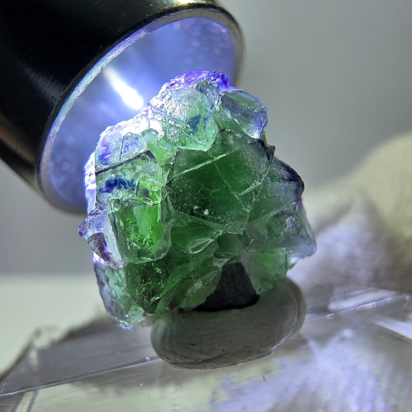 - Grün, weiß transparente und lila zonale Phantom Fluorit Würfel