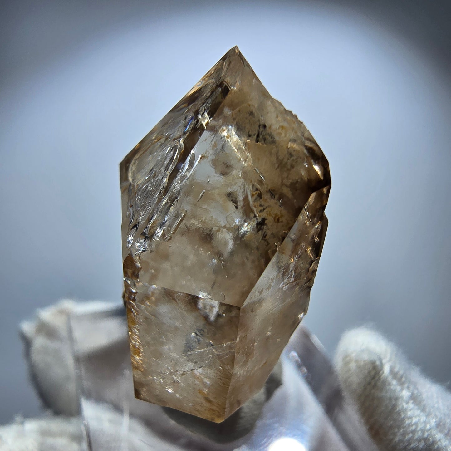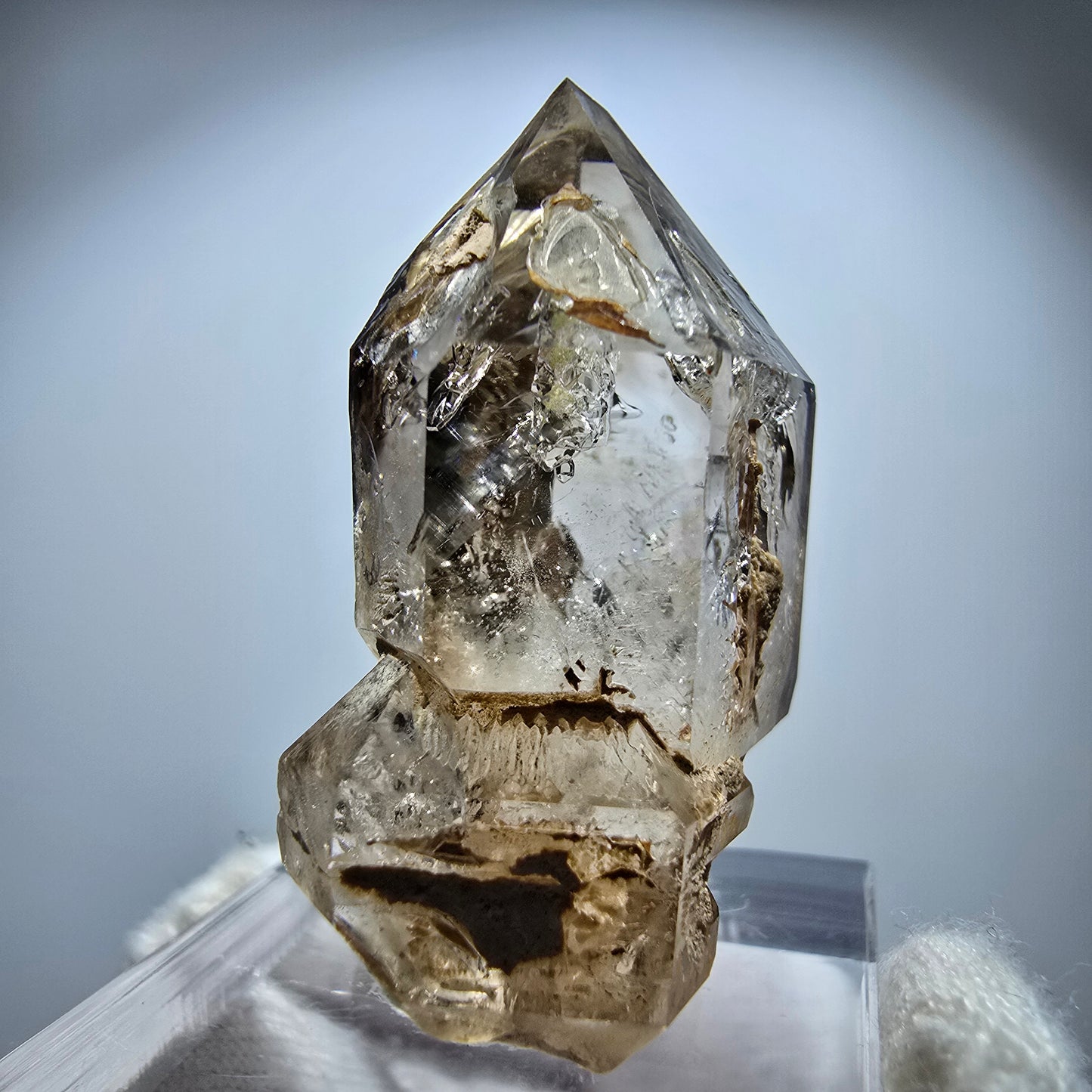 Mit einer einzigartigen Doppelender-Zepter-Kristallform und charakteristischen fensterförmigen Einschlüssen ist dieser Quarz ein wahres Meisterwerk der Natur. Maße: 36*25*13mm und ein Gewicht von 15g machen ihn zu einem beeindruckenden Sammlerstück oder einem besonderen Geschenk für Kristallliebhaber. Dieser spezielle Kristall wurde in Goboboseb, Namibia, gefunden, einer Region, die bekannt ist für ihre hochwertigen Mineralien.