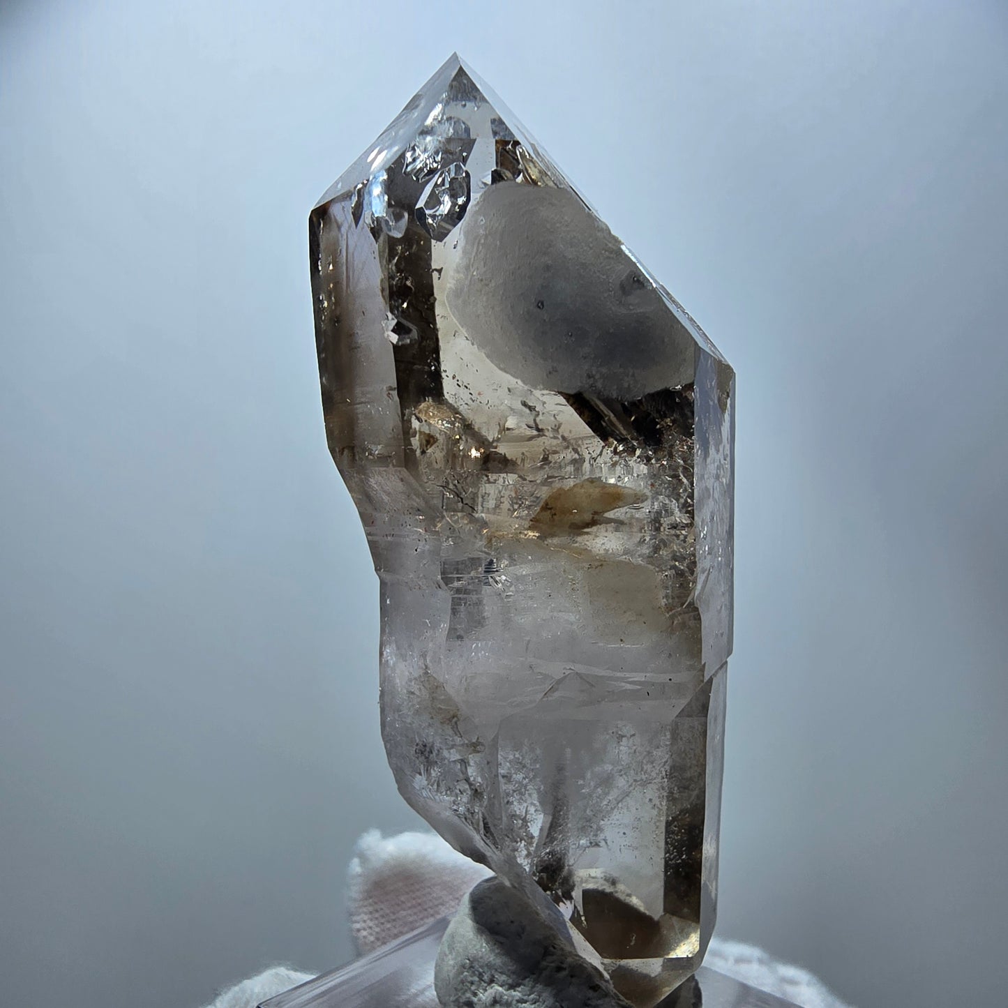 Entdecken Sie den einzigartigen Phantom Rauchquarz DT Fenster Zepter Kristall, der mit seiner außergewöhnlichen Schönheit und Klarheit besticht. Dieser seltene Kristall zeigt eine beeindruckende braun-weiße, transparente Kristallbildung und beherbergt faszinierende Phantome im Inneren. Die speziellen Eigenschaften des Rauchquarz, kombiniert mit der formvollendeten Doppelender-Zepter-Kristallform, machen dieses Stück zu einem wahren Sammlerstück.