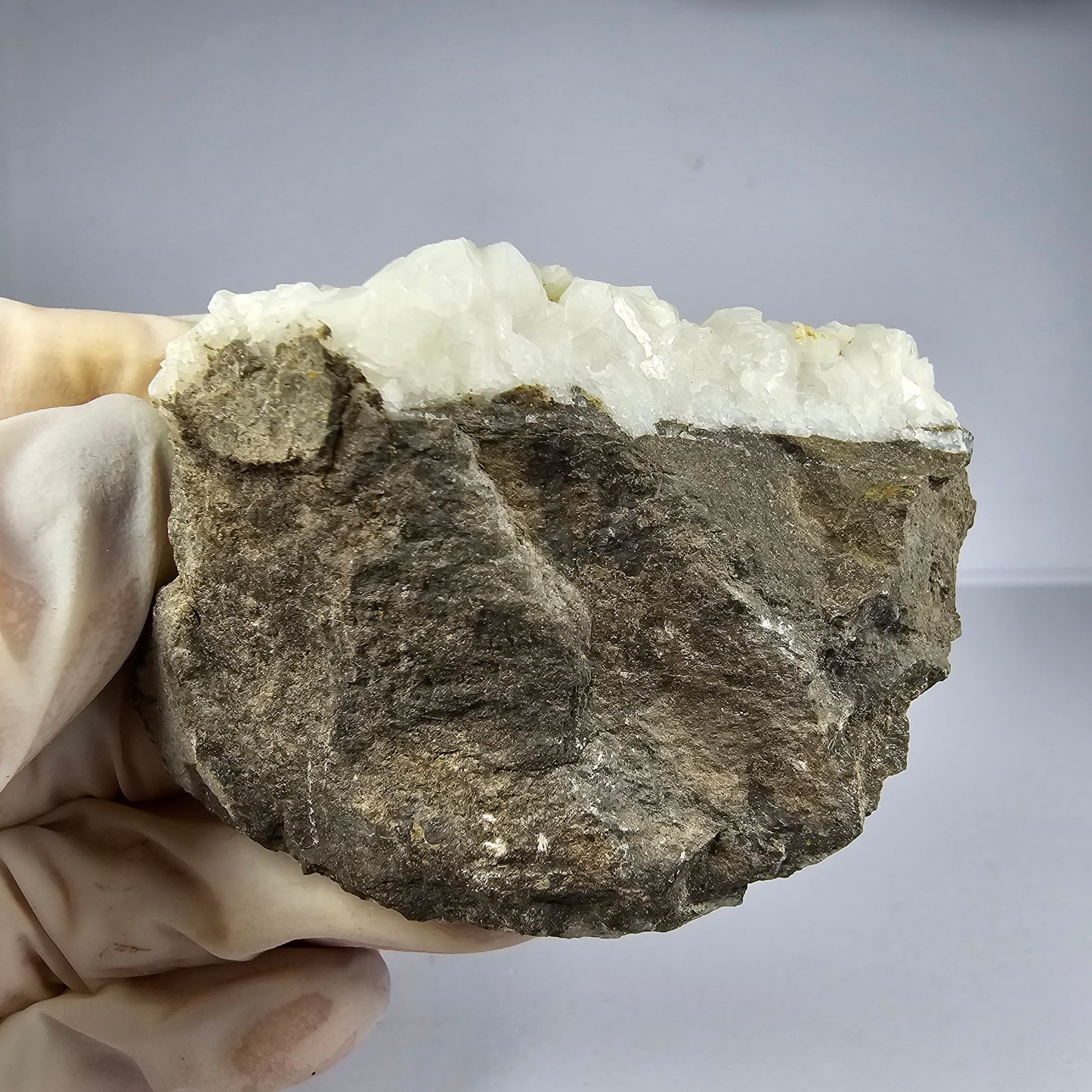 Diese wunderschöne Mineralienstufe besticht durch ihre schönen, weißen Kristalle. Die Stufe hat beeindruckende Maße von 66 x 41 x 28 mm und ein Gewicht von 79 g. Der Fundort ist leider unbekannt, was dieser seltenen Stufe jedoch keinen Abbruch tut.