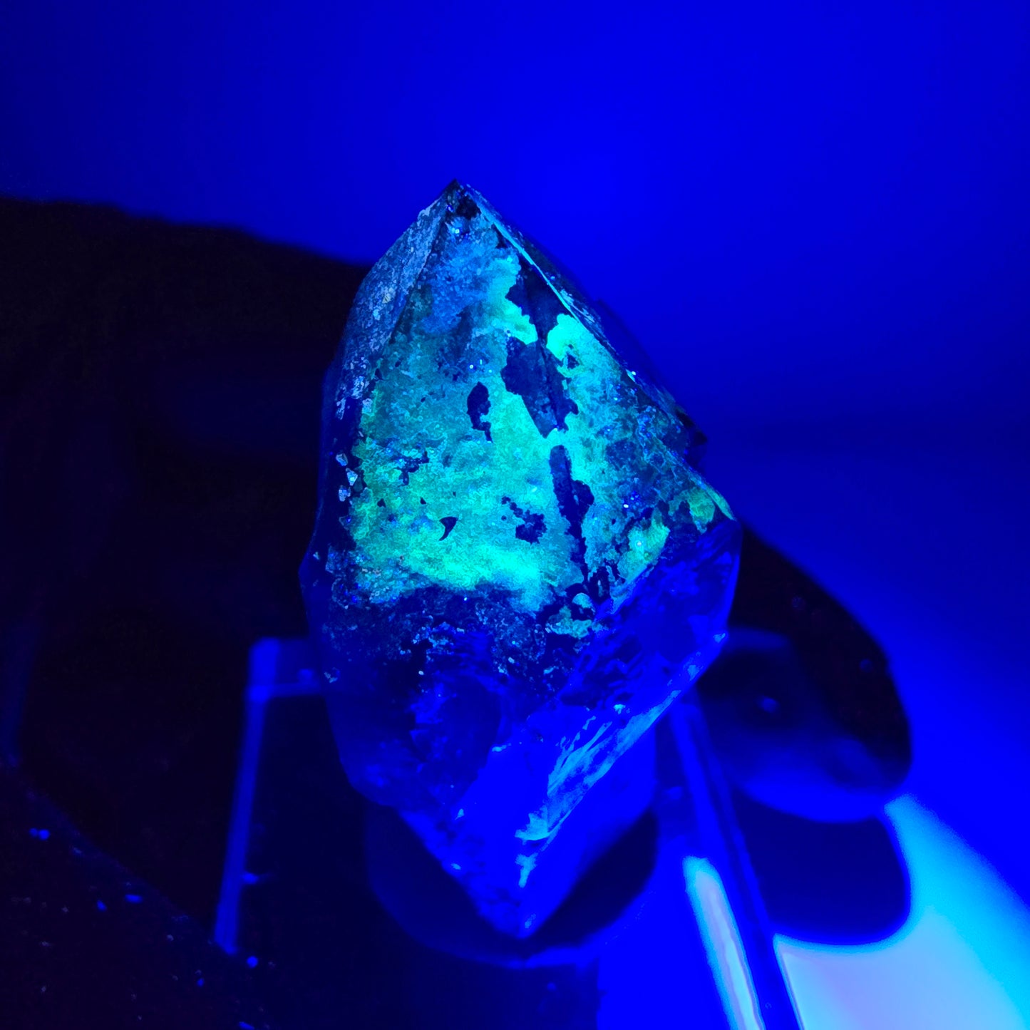 - Besonderheit: Hyalit Kristalle leuchten unter UV-Licht neongelb