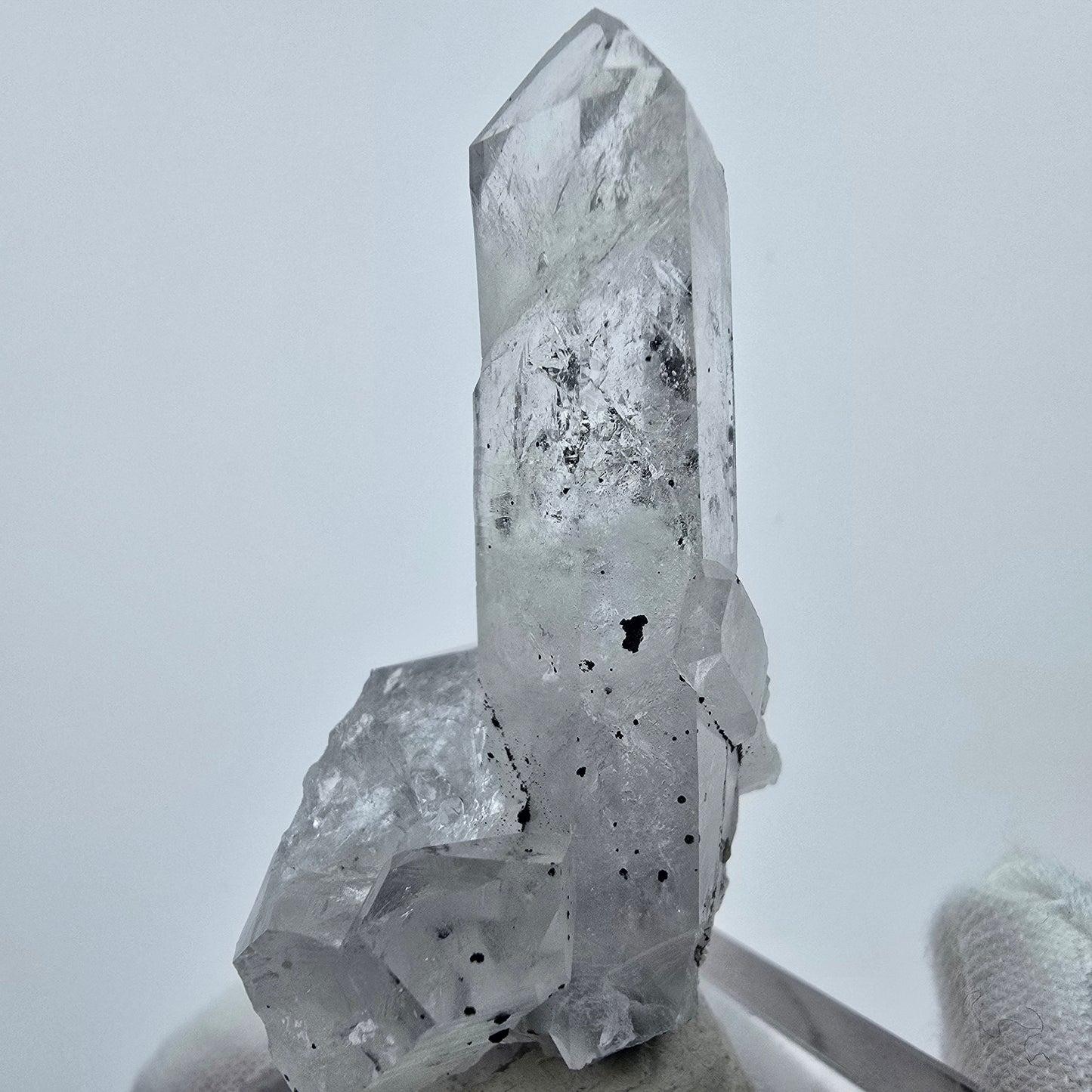 - Schwarze Hämatit-Einschlüsse in einigen Kristallen