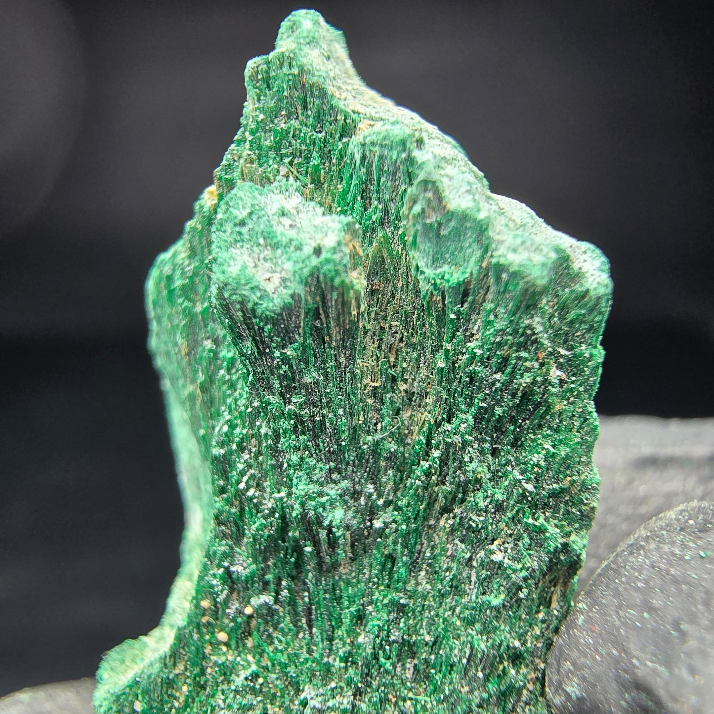 Scopri questa splendida statuetta minerale in malachite, che si distingue per la sua marcata formazione cristallina di colore verde scuro. Questa rara statuetta è un vero pezzo da collezione ed è perfetta per la decorazione o come regalo per gli amanti dei minerali.