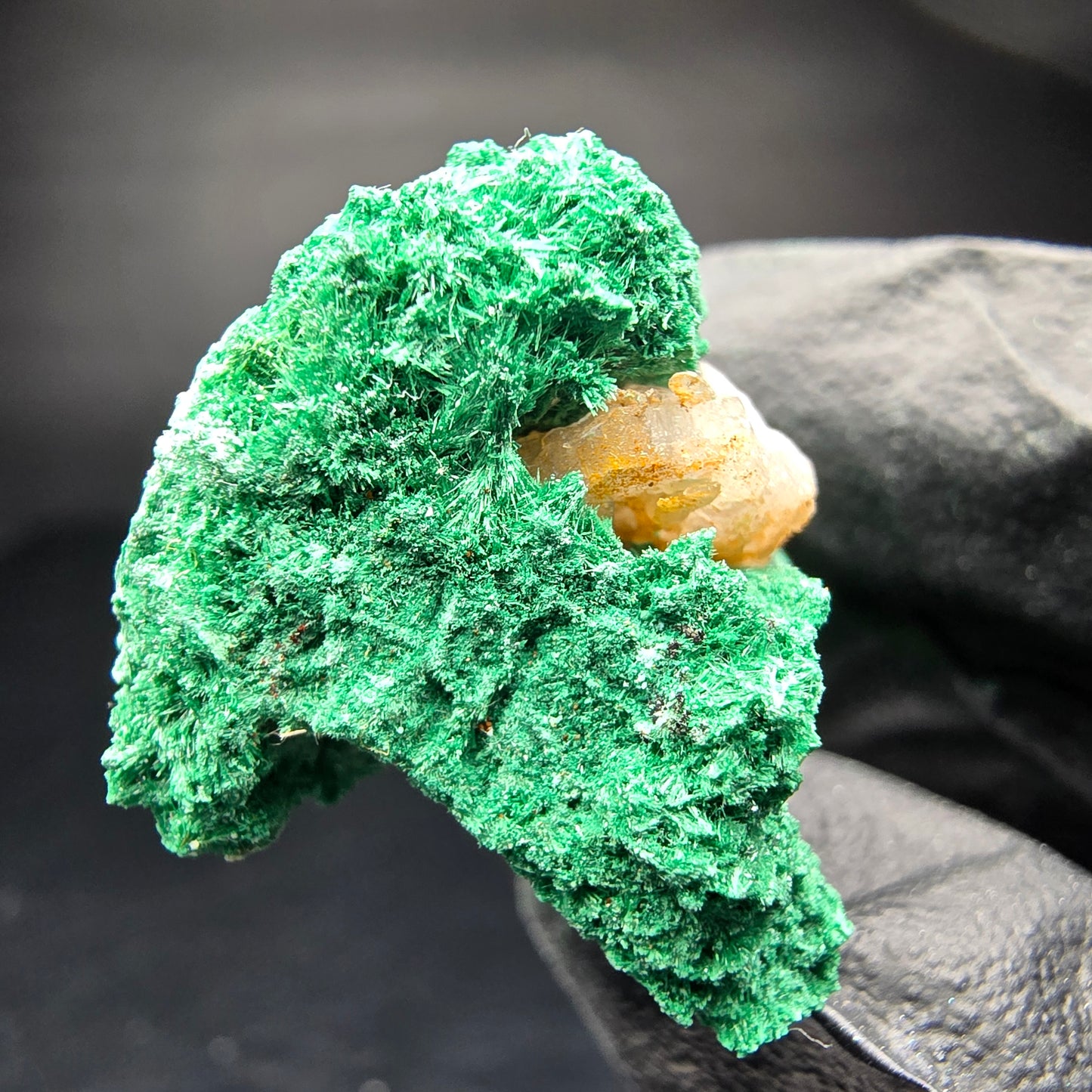 La scultura di malachite ha le dimensioni di 47 x 22 x 23 mm e pesa 20 g. Proviene dal Kaokoveld in Namibia, una regione nota per i suoi impressionanti ritrovamenti minerali. Il colore verde scuro e la struttura unica rendono questo pezzo un punto culminante in ogni collezione.