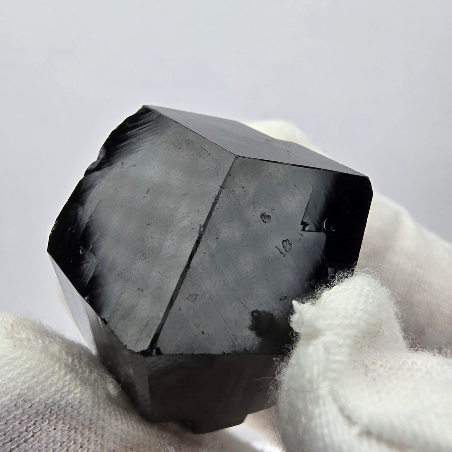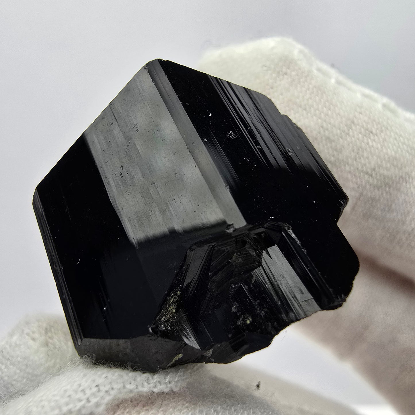 Entdecken Sie diese faszinierende Mineralienstufe, die einen atemberaubenden schwarzen glänzenden Schörl Turmalin Kristall präsentiert. An einer Seite der Stufe sind mehrere Hyalit Kristalle gewachsen, die unter UV Licht in einem strahlenden Neongelb leuchten. Diese einzigartige Kombination macht die Stufe zu einem absuluten Hingucker für jede Sammlung.