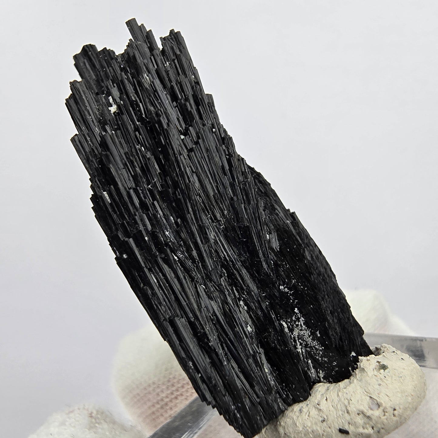 Die Maße dieser außergewöhnlichen Stufe betragen 45mm x 19mm x 11mm und sie hat ein Gewicht von 11g. Dieser Schörl Turmalin stammt aus der Region Erongo in Namibia, die für ihre hochwertigen mineralogischen Funde bekannt ist.