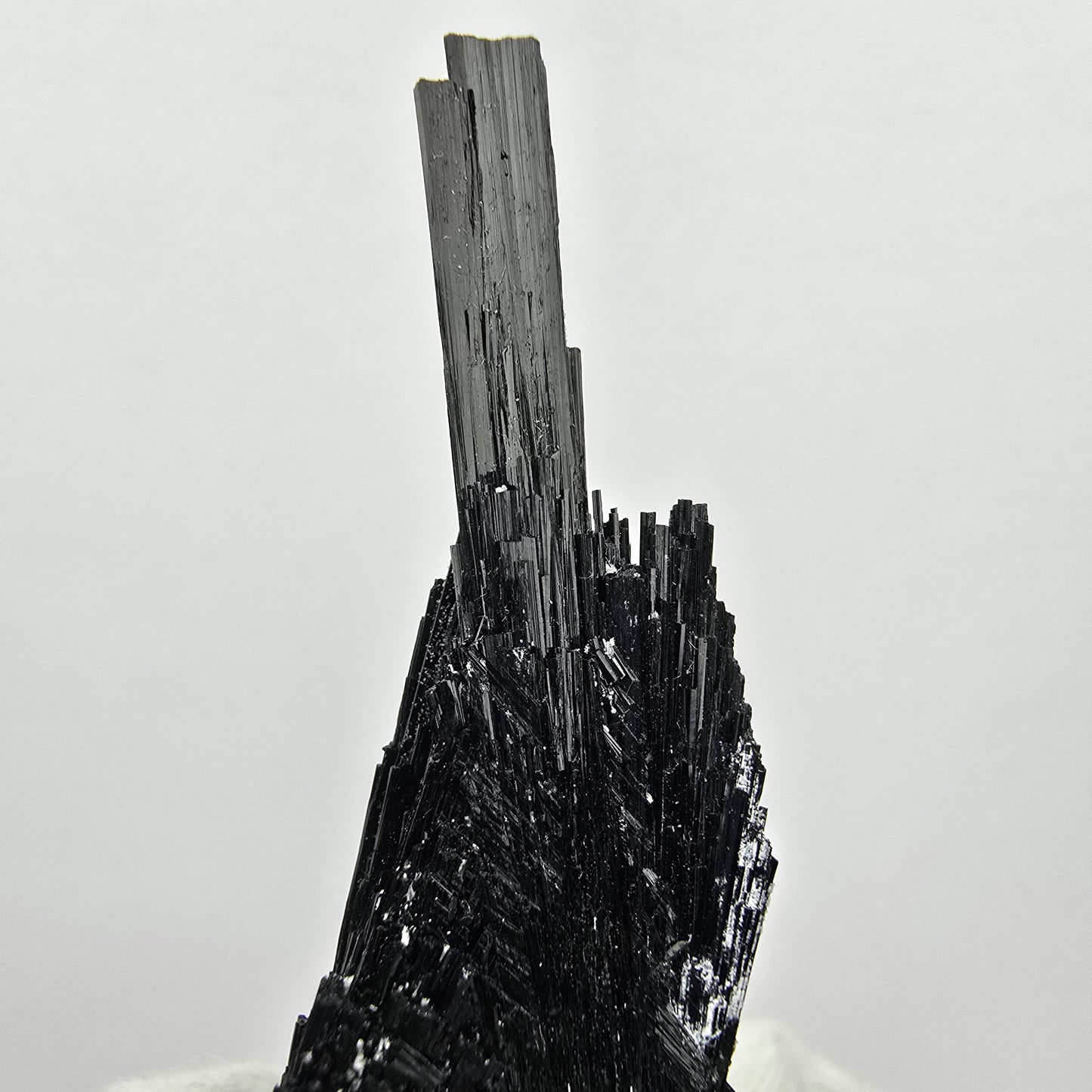 Entdecken Sie diese faszinierende und seltene Mineralienstufe mit länglichen, schwarz glänzenden Schörl Turmalin Kristallen. Der Schörl ist eine der bekanntesten Varietäten der Turmalin-Gruppe und besticht durch seine intensiv schwarze Farbe, die ihm einen elegant-anmutigen Charakter verleiht. Durch seine besondere Kristallform und die auffällige Textur wird dieses Stück zu einem echten Highlight in jeder Sammlung.