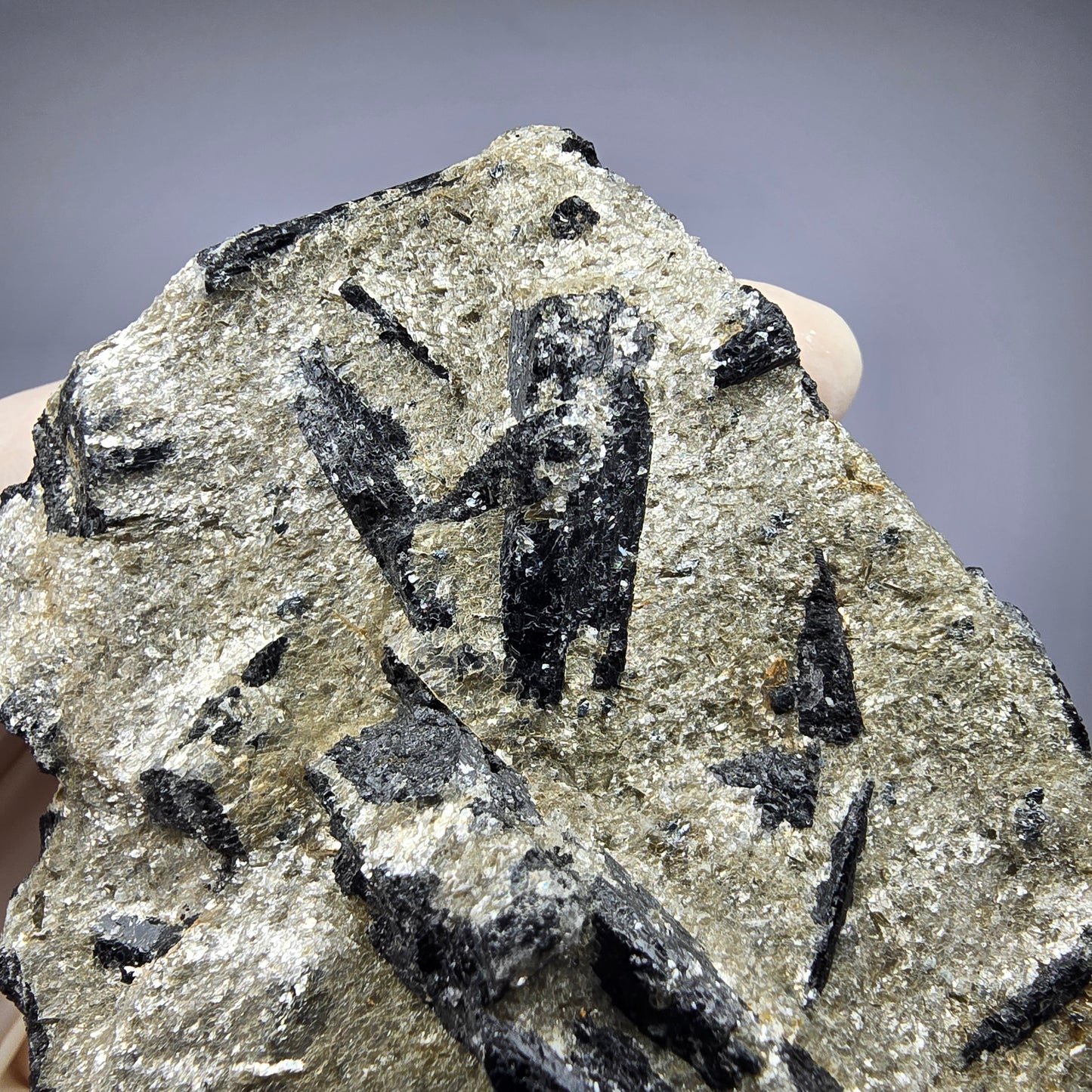 Schörl ist die häufigste Varietät des Turmalins und zeichnet sich durch seine charakteristische schwarze Farbe aus. Die Kristalle in dieser Stufe weisen eine besonders attraktive längliche Form auf, die ihre natürliche Wachstumsstruktur wunderbar zur Geltung bringt.