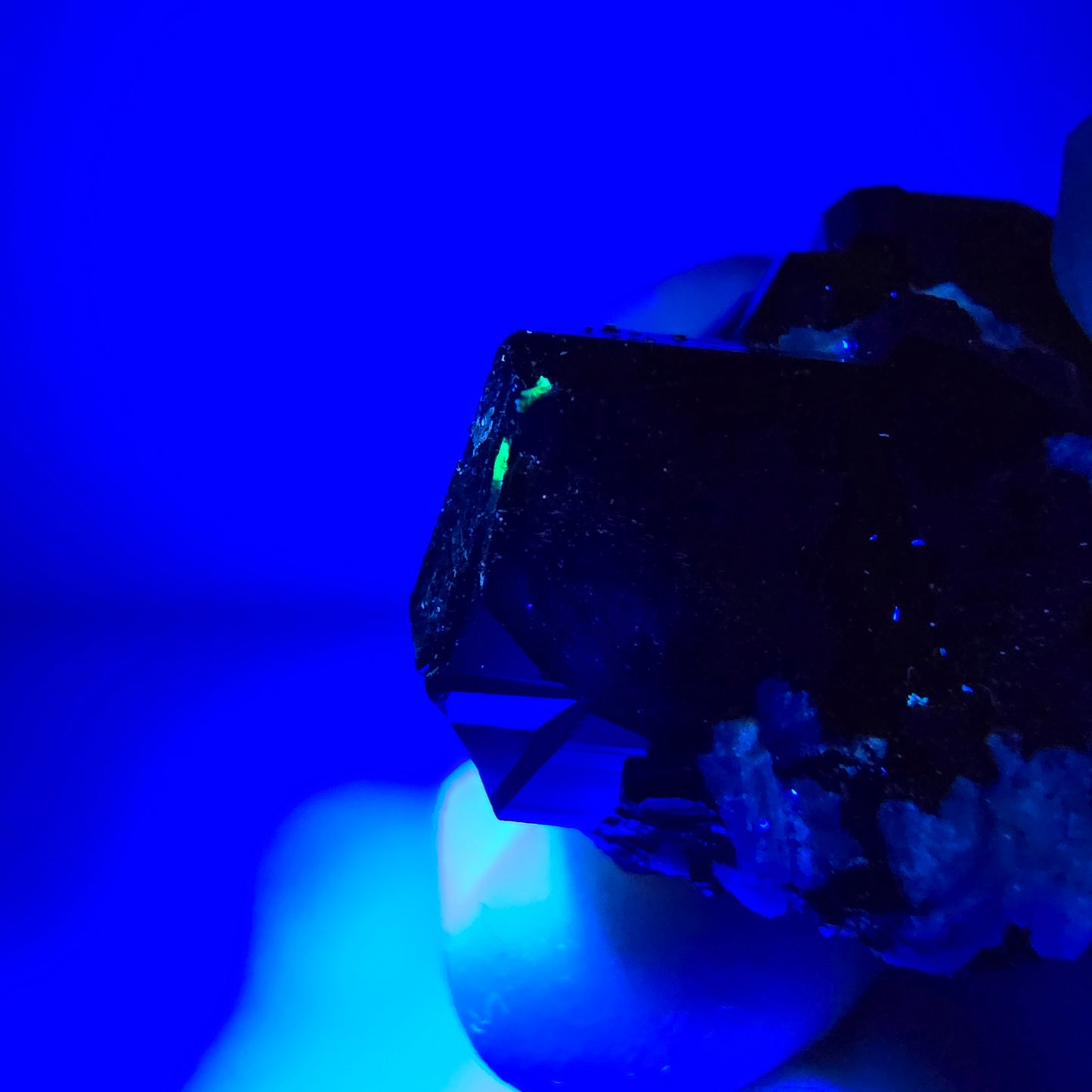 - Hyalit Kristalle, die unter UV Licht neongelb leuchten