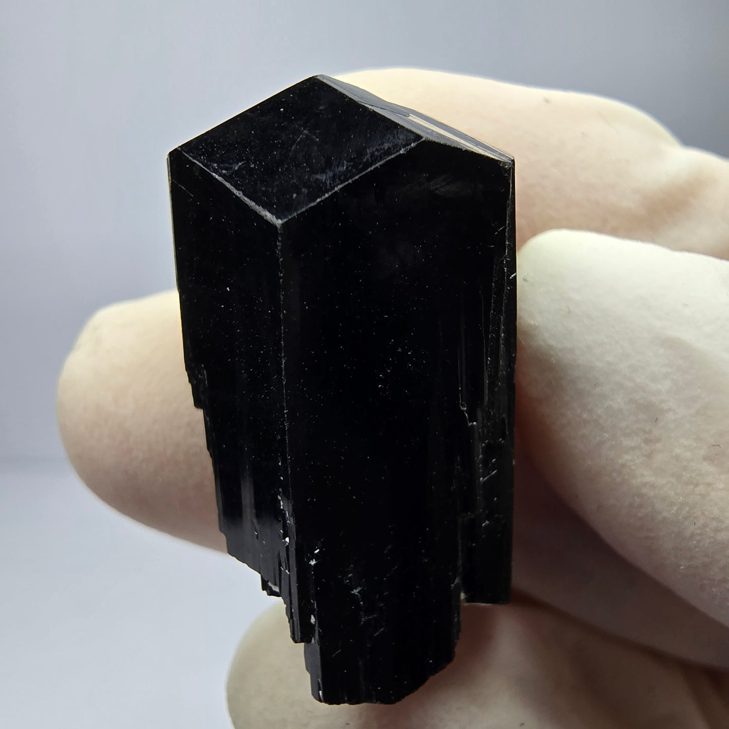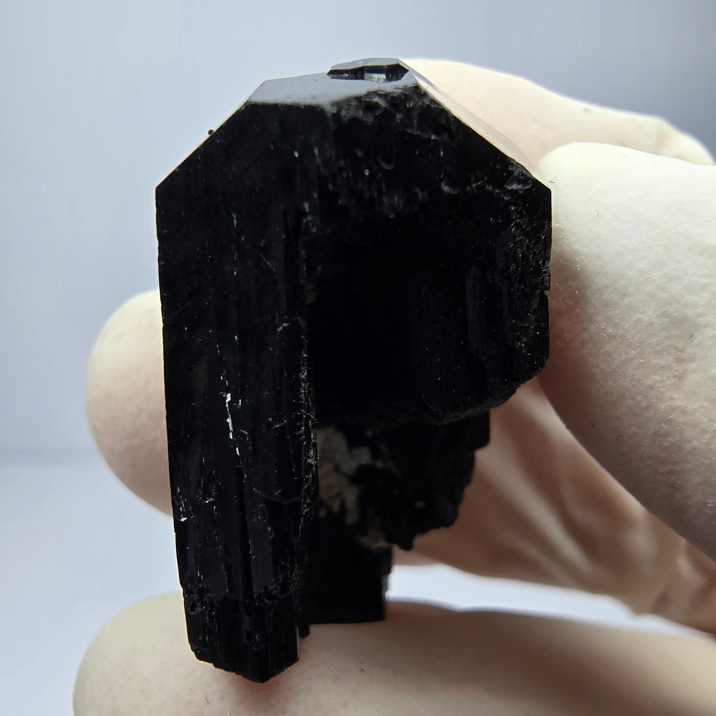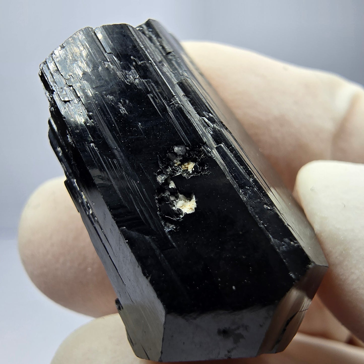 Entdecken Sie diese wunderschöne Mineralienstufe, die mit einem schwarz glänzenden, spiegelnden und symmetrischen Schörl Turmalin sowie weißen bis beige Orthoklas Kristallen verziert ist. Diese exquisite Kombination aus Mineralien macht das Stück zu einem echten Blickfang für Sammler und Liebhaber von Mineralien.