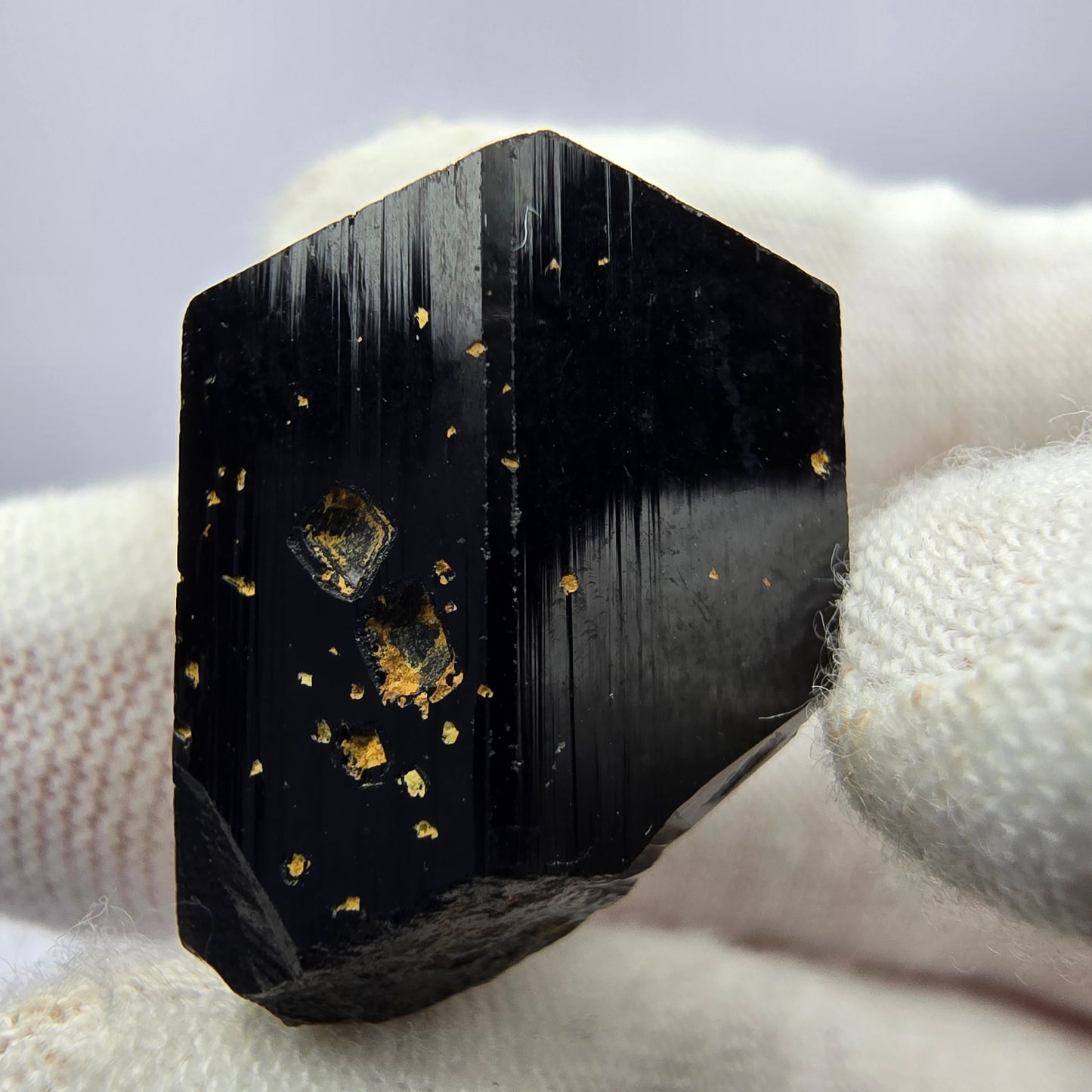 Entdecken Sie diese beeindruckende Mineralienstufe mit einem schwarz glänzenden, symmetrischen Schörl Turmalin Kristall. Dieser exquisite Kristall besticht durch seine elegante Form und die tiefschwarze Farbe, die ihm eine besondere Ausstrahlung verleiht. Der Schörl Turmalin ist nicht nur ein faszinierendes Sammlerstück, sondern auch ein wunderbares Geschenk für Mineralienliebhaber.
