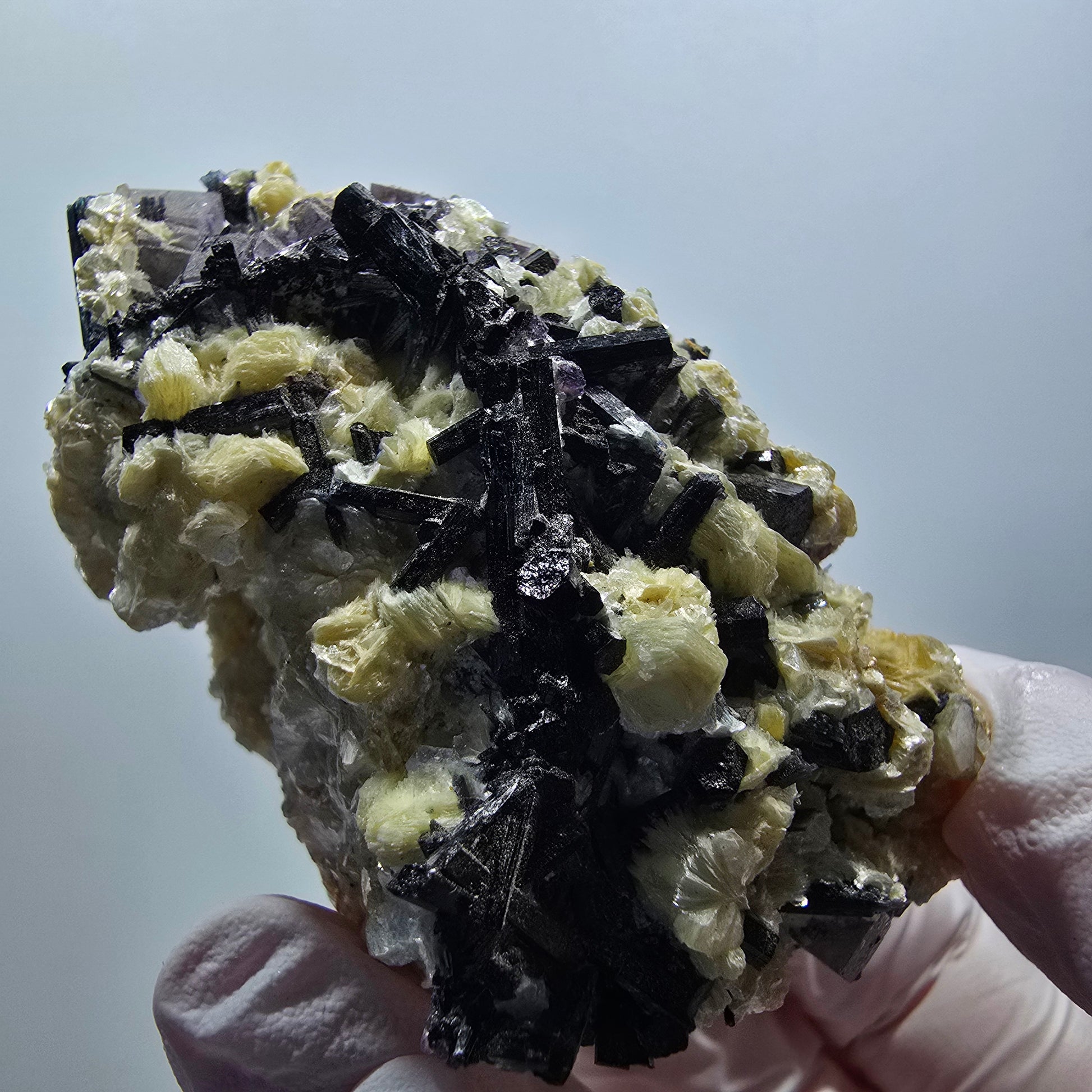 - Mineralien: Bunte Phantom Fluorit, Schörl Turmalin, Muskovit