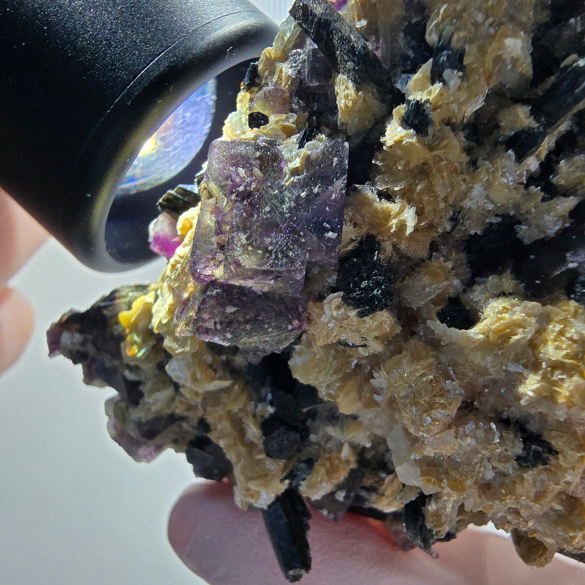 Bunte Phantom Fluorit, Schörl Turmalin, Muskovit Erongo, Namibia 69*52*26mm