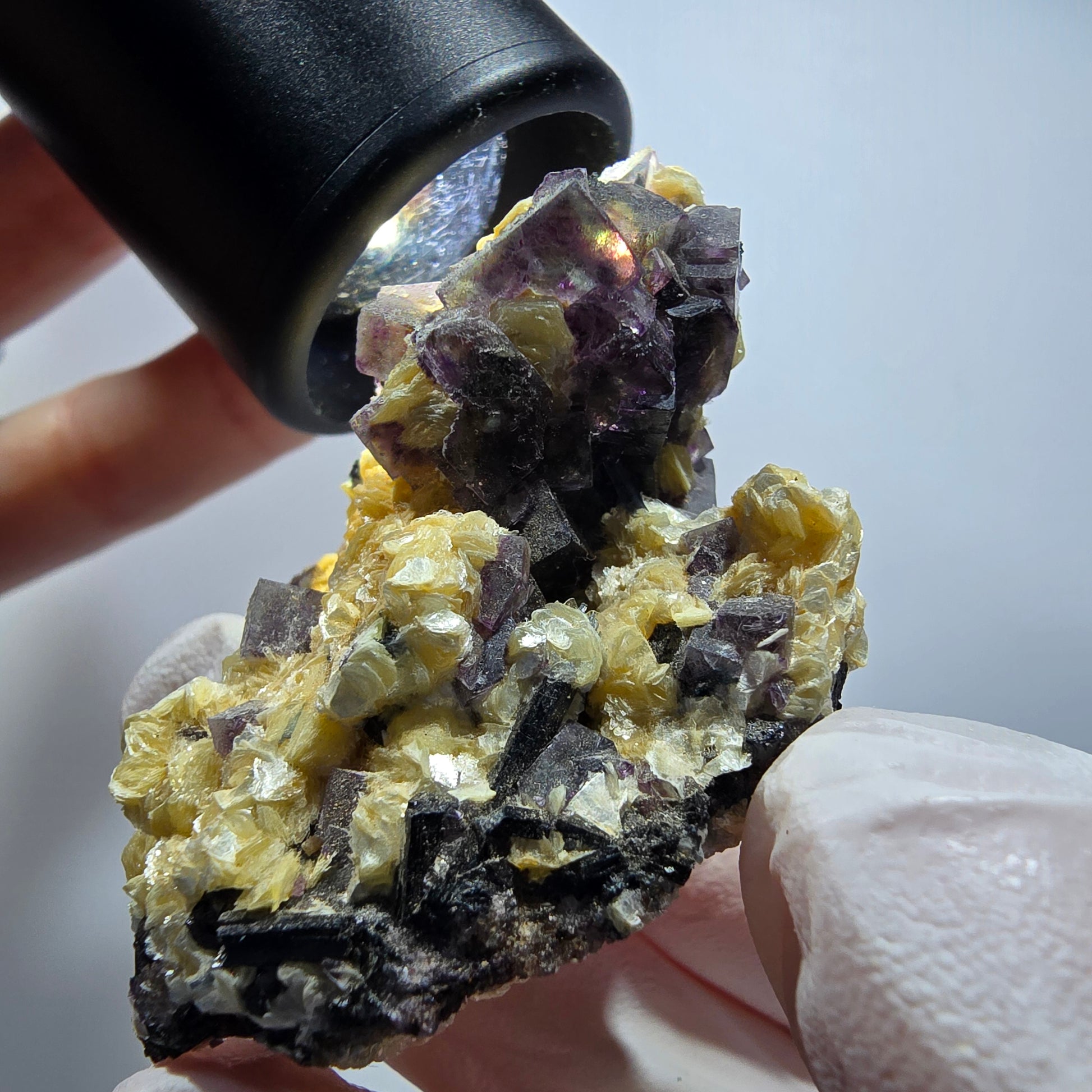 - Mineralien: Bunte Phantom Fluorit, Schörl Turmalin, Muskovit