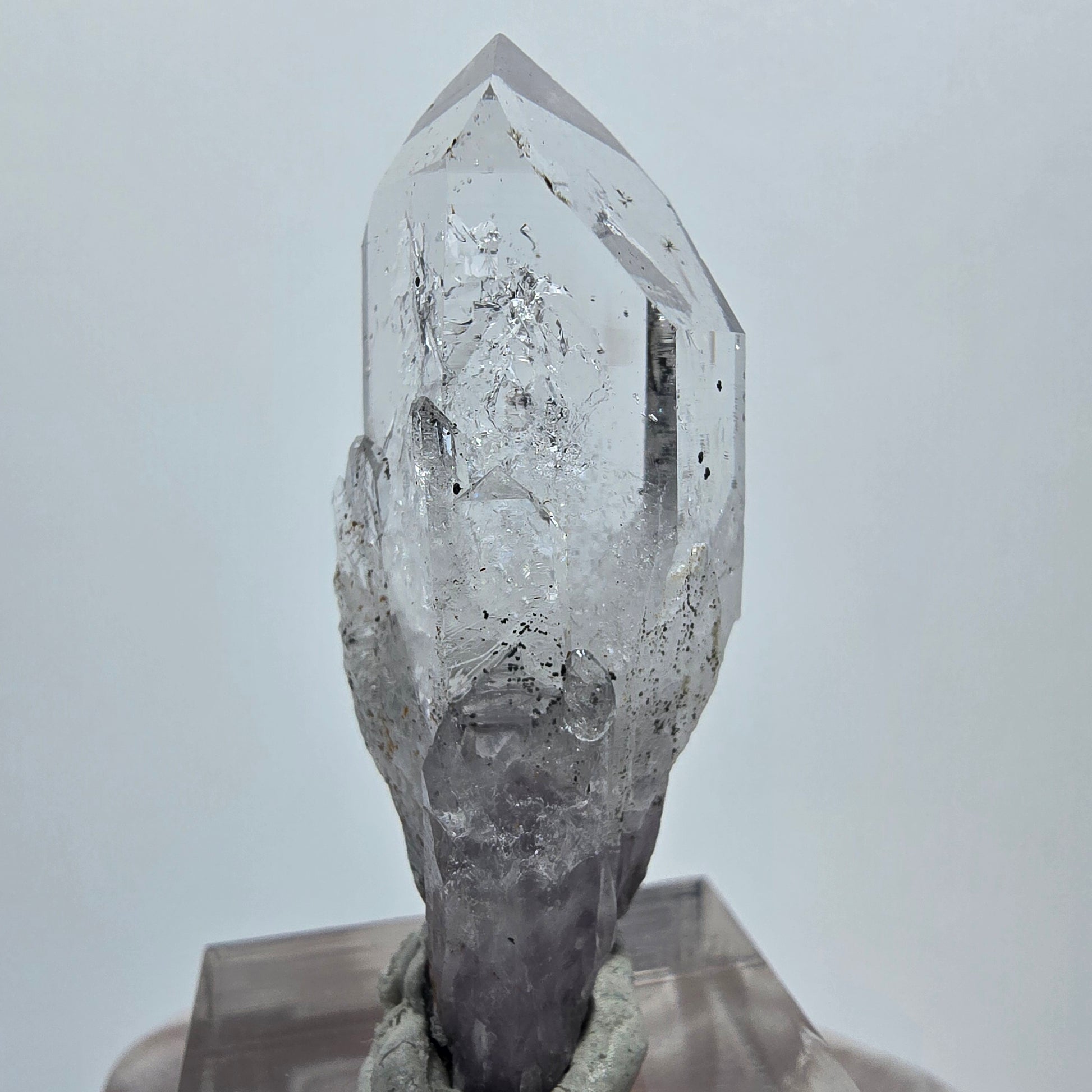 - Besonderheiten: 1x beweglicher Enhydro-Einschluss, schwarze Hämatit-Einlagerungen, horizontale Lemurian-Rillen