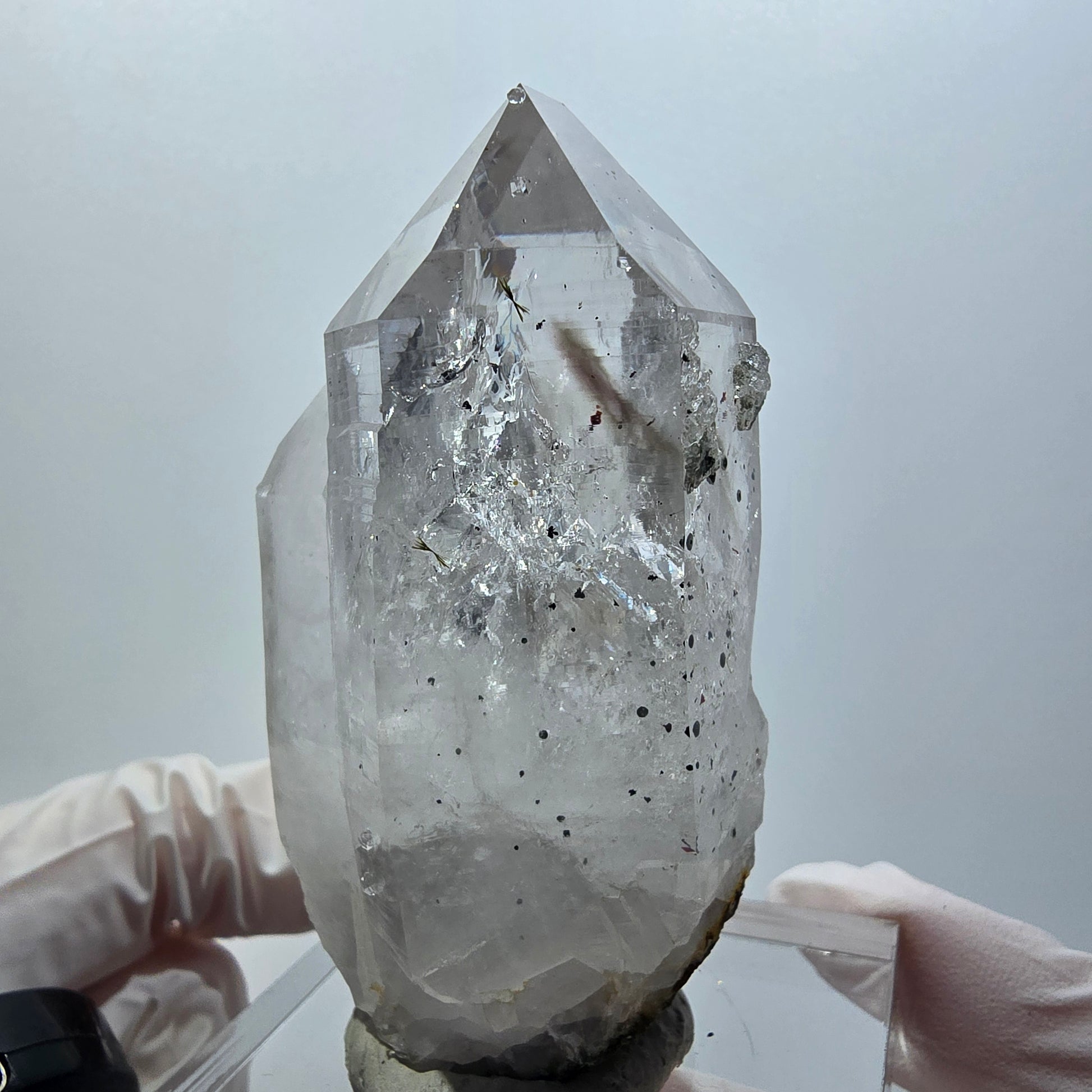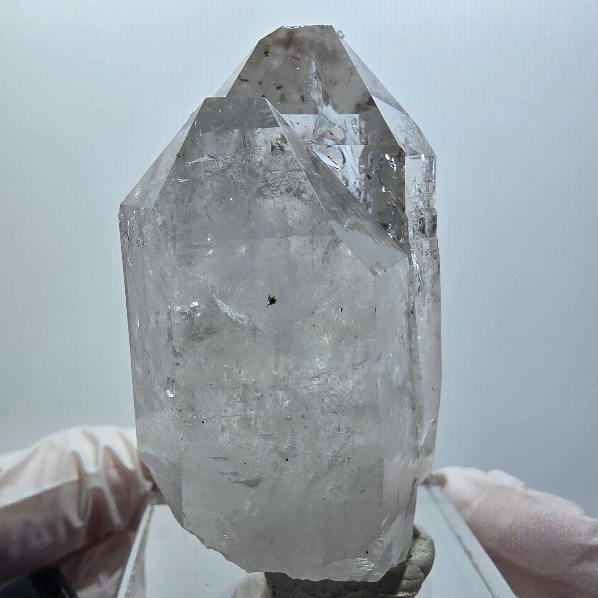- Besonderheiten: Große Blase, braune Phantome, Epidot- und Hämatit-Einschlüsse