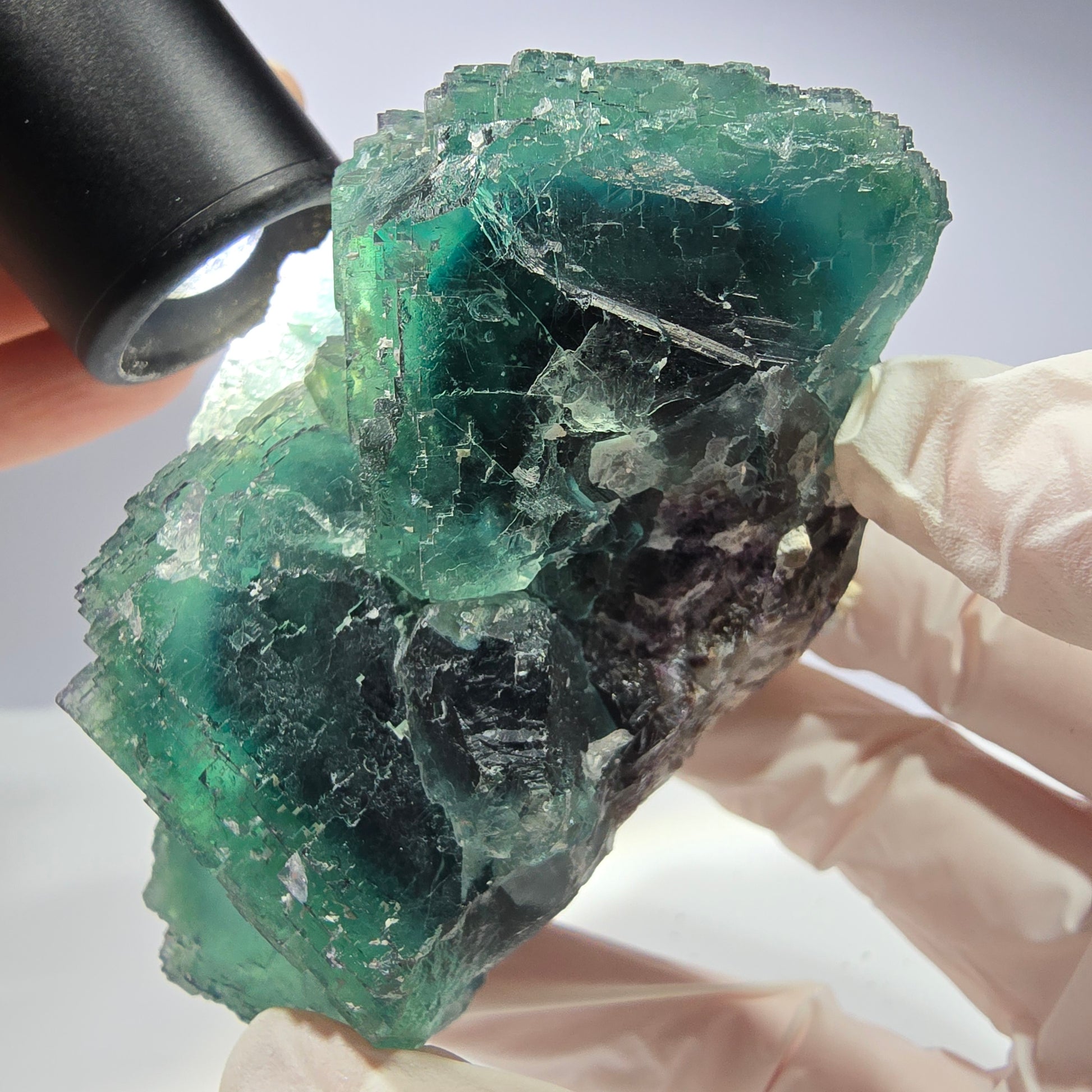 Das Exemplar misst 90×67×64 mm, wiegt 498 g und stammt aus Okorusu, Namibia – einem weltweit bekannten Fundort für hochwertige Fluorite. Die einzigartige Kristallstruktur und die klare Farbgebung unterstreichen die außergewöhnliche Qualität dieses Minerals.