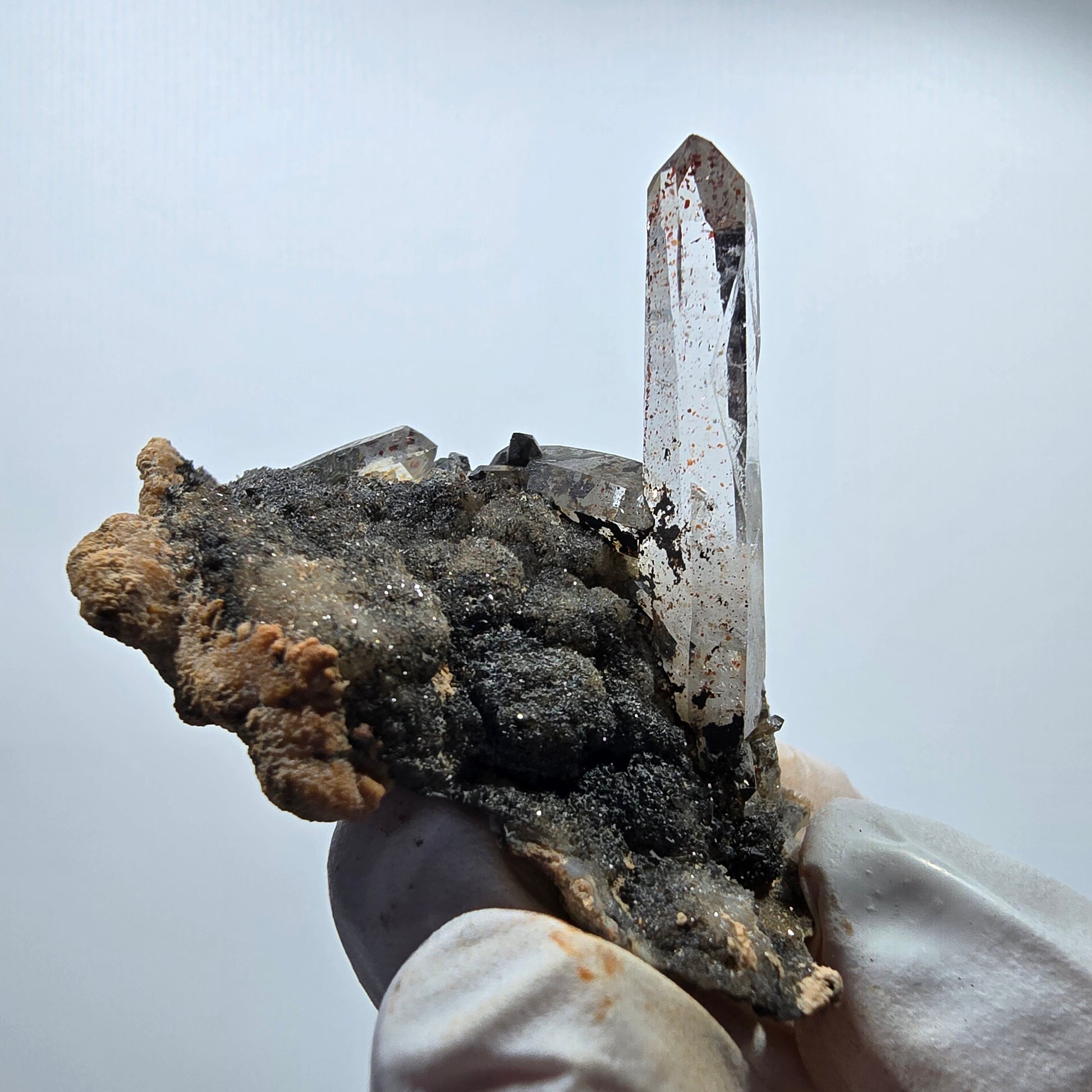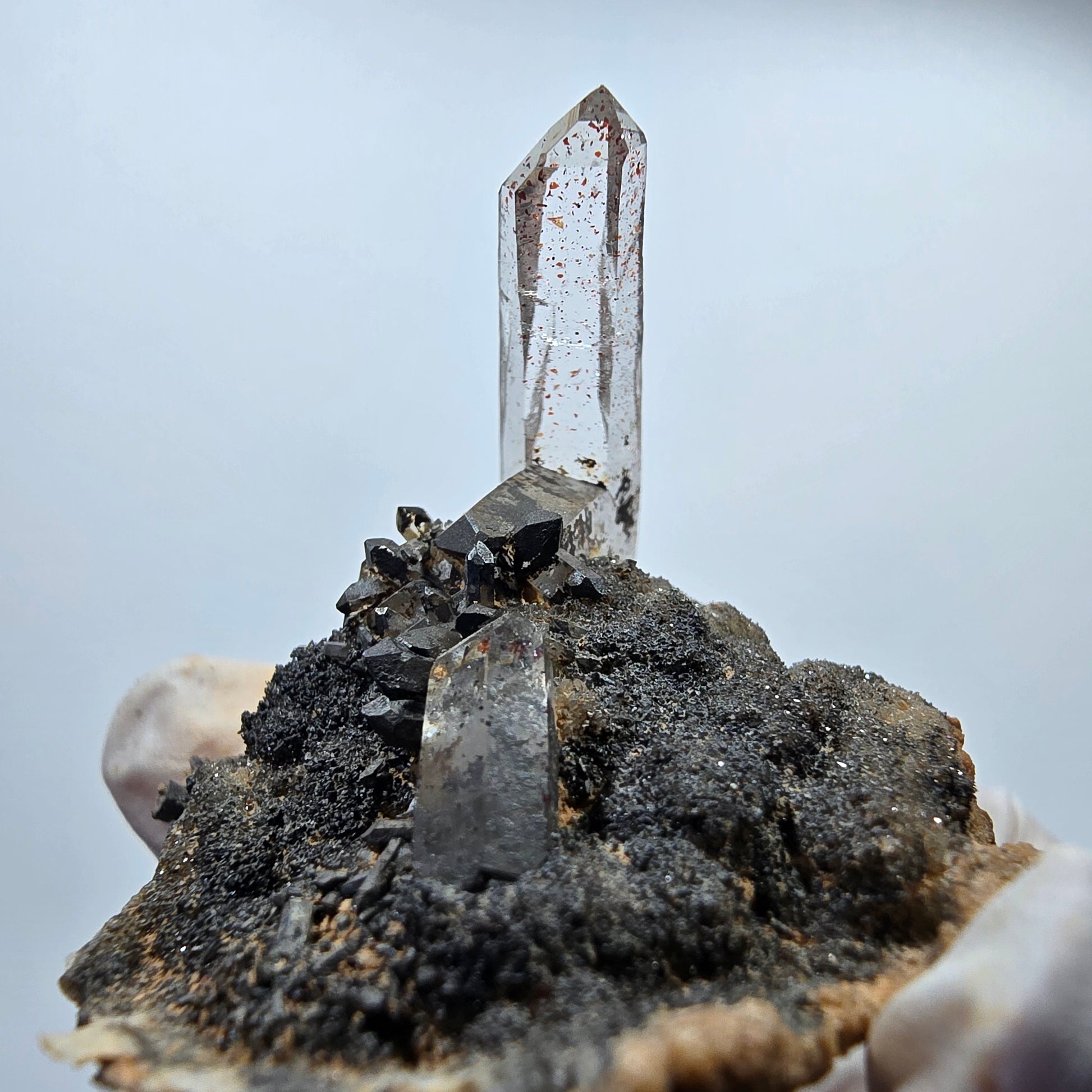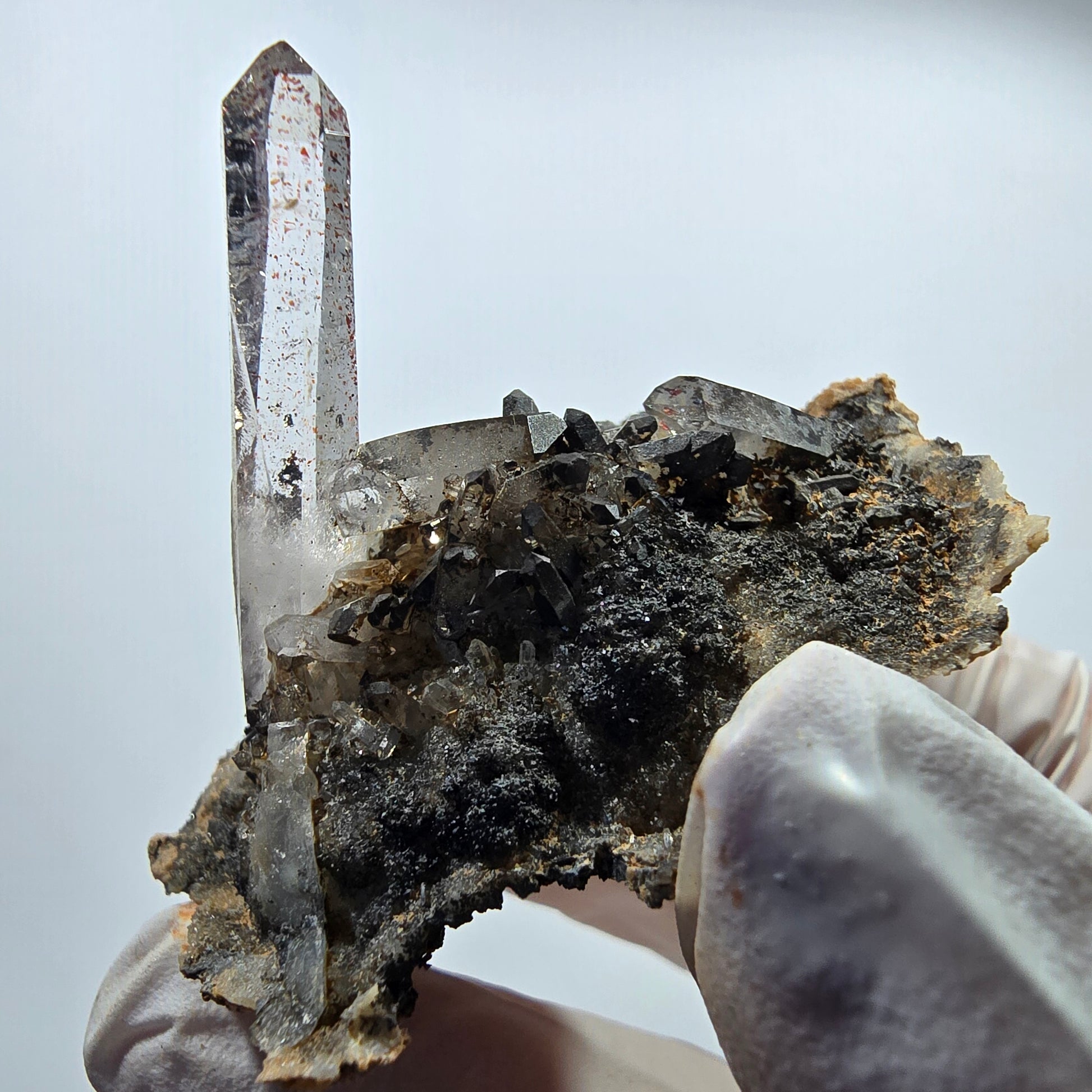 - Mineral: Rauchquarz mit Hämatit-Einschlüssen auf Matrix