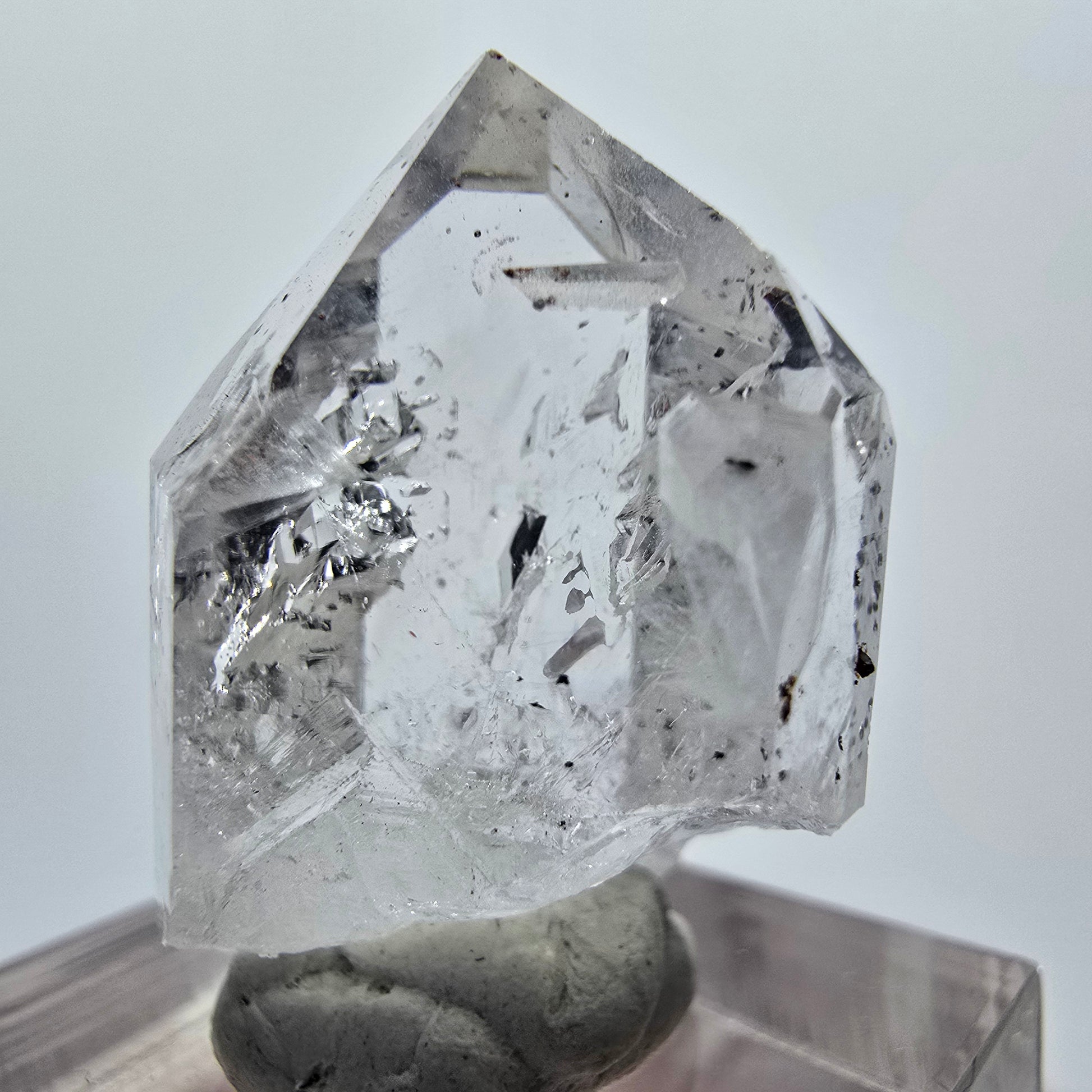 - Mineral: Klare Quarzspitze mit Hämatit