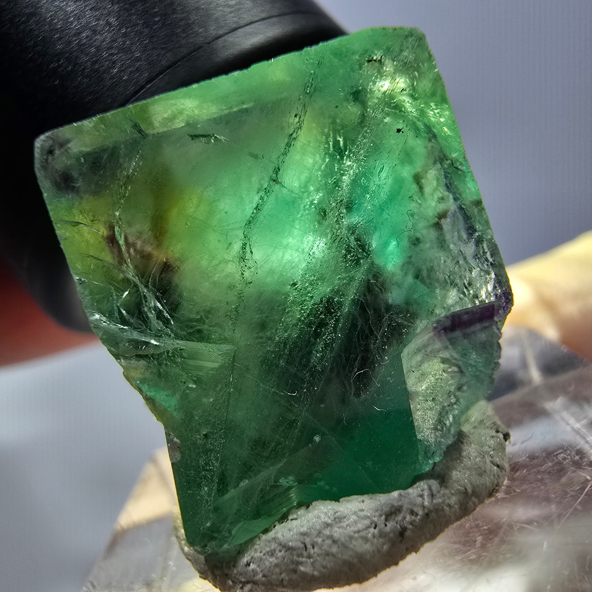 Klarer Phantom Fluorit Würfel, grün lila Okorusu, Namibia 18*16*17mm