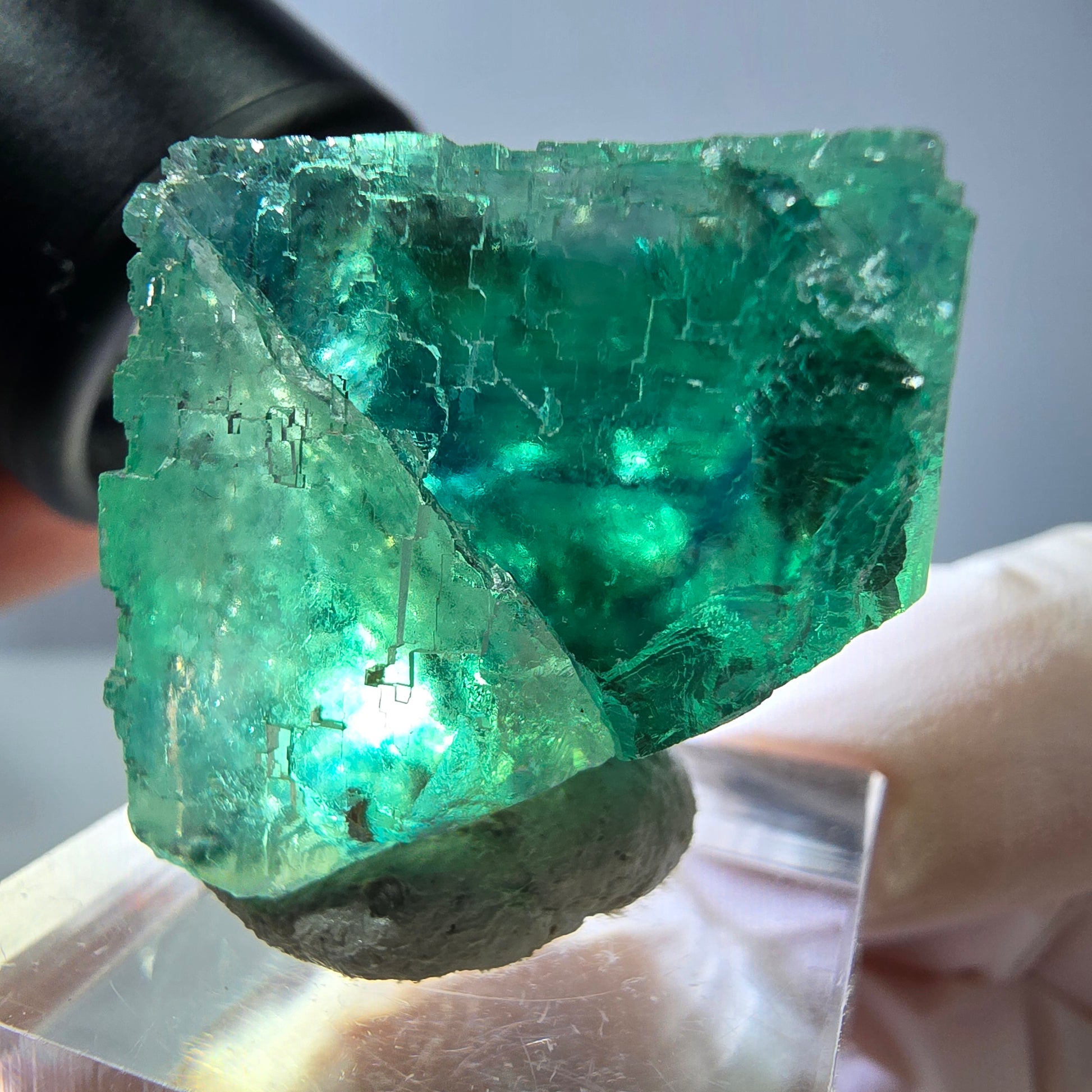 Die ideale Ergänzung für Sammler oder als dekoratives Element in Ihrem Zuhause. Dieser qualitativ hochwertige Fluorit stammt aus dem renommierten Fundort Okorusu in Namibia und bringt mit seinen Maßen von 26 x 25 x 25 mm und einem Gewicht von 32 g die perfekte Balance aus Größe und Handlichkeit mit.