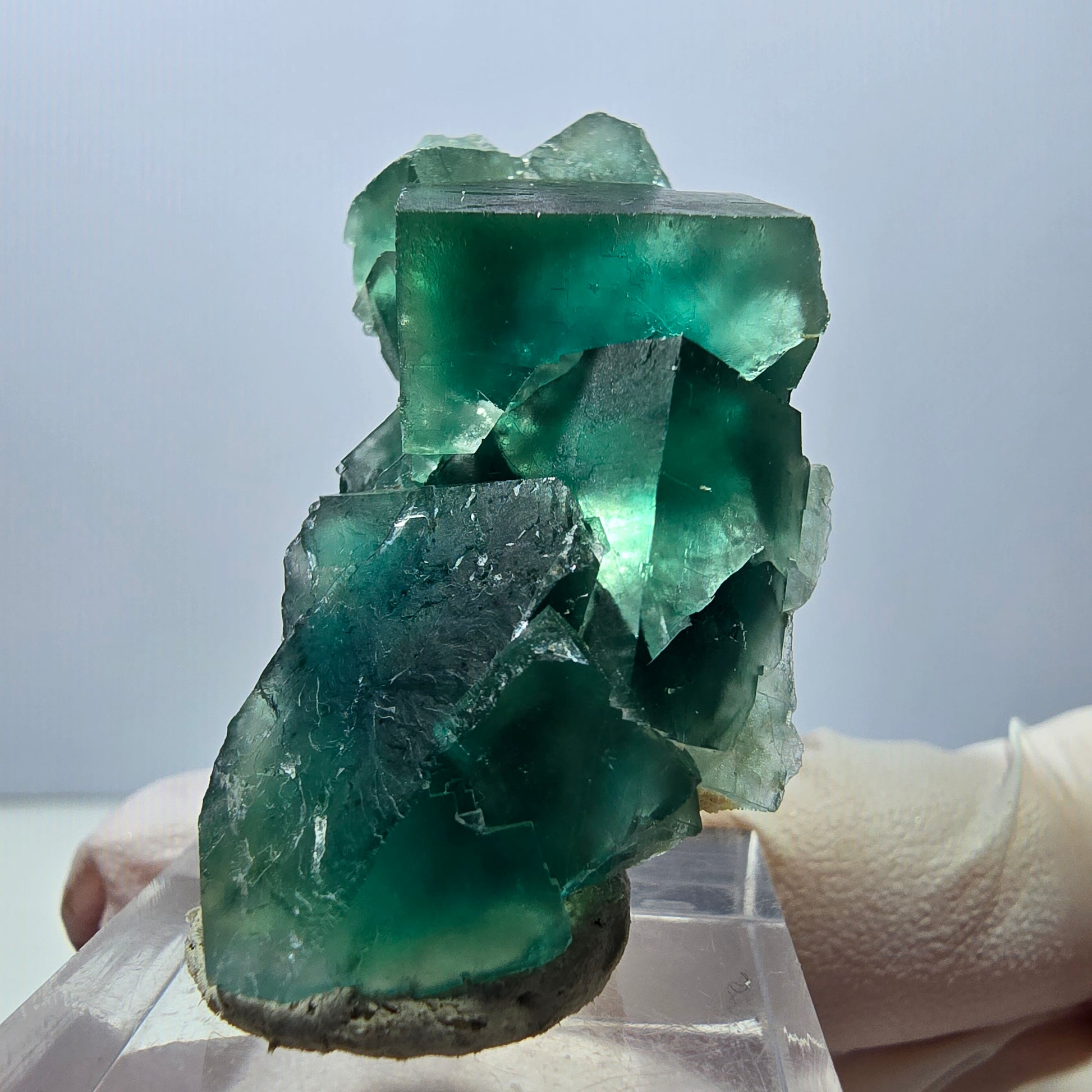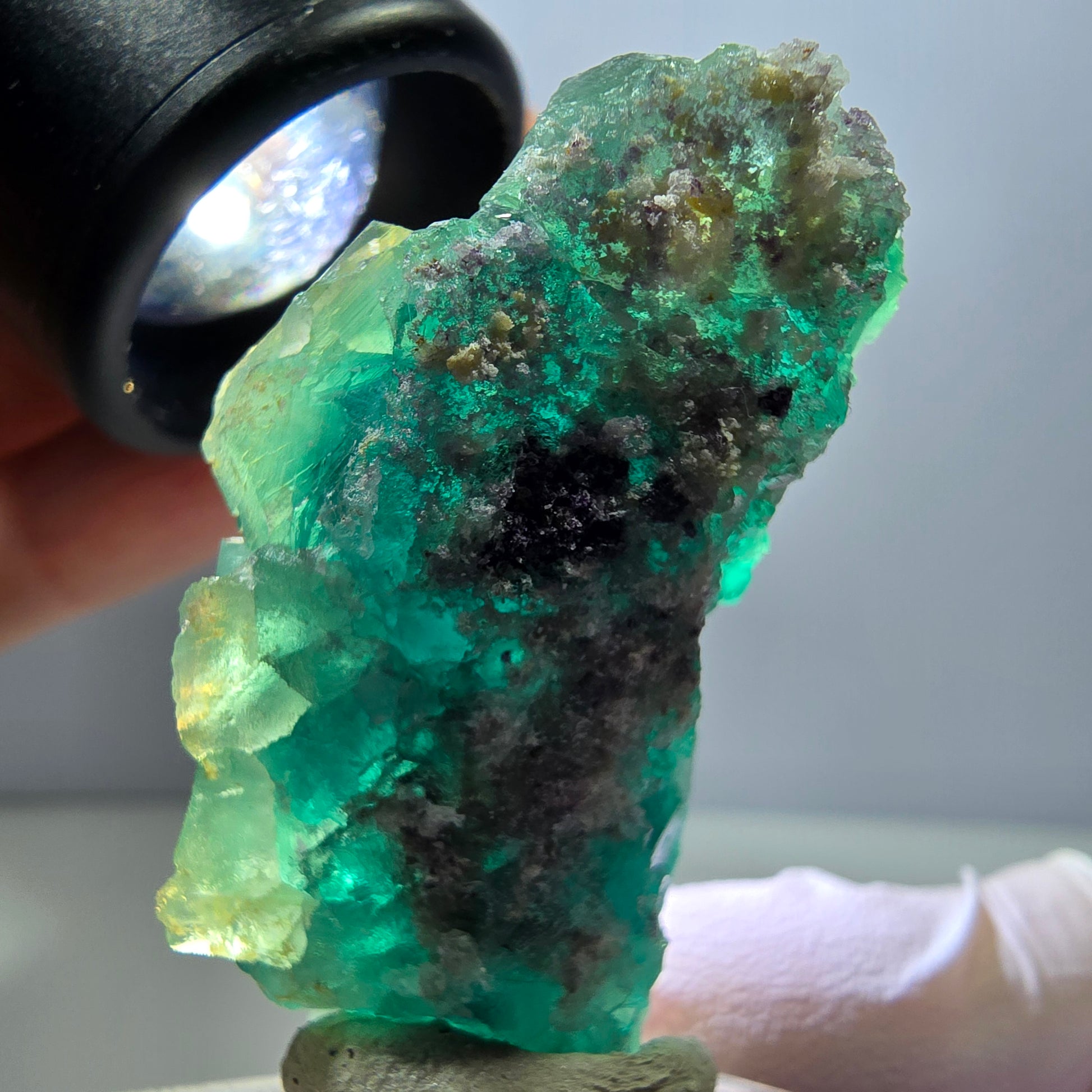 Der Fluorit wurde in Okorusu, Namibia, gefunden, einer Region die für ihre hochwertigen Kristalle bekannt ist. Sein transparentes, kräftiges Grün strahlt nicht nur Eleganz aus, sondern soll auch für Klarheit und Konzentration im Geiste stehen. Egal, ob Sie ihn als dekoratives Element oder in Ihrer Kristallkollektion verwenden möchten, dieser Phantom Fluorit ist ein wahrer Schatz der Natur.