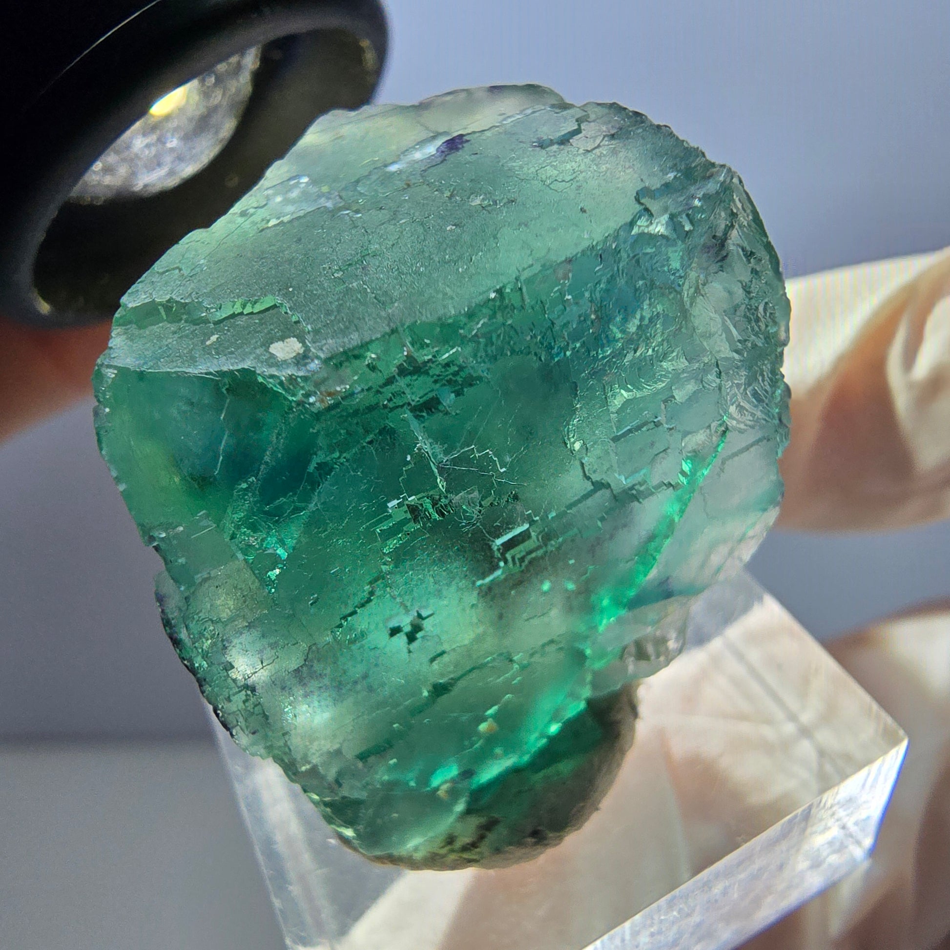 - Farbe: Klarer grün transparenter Fluorit mit Phantomen