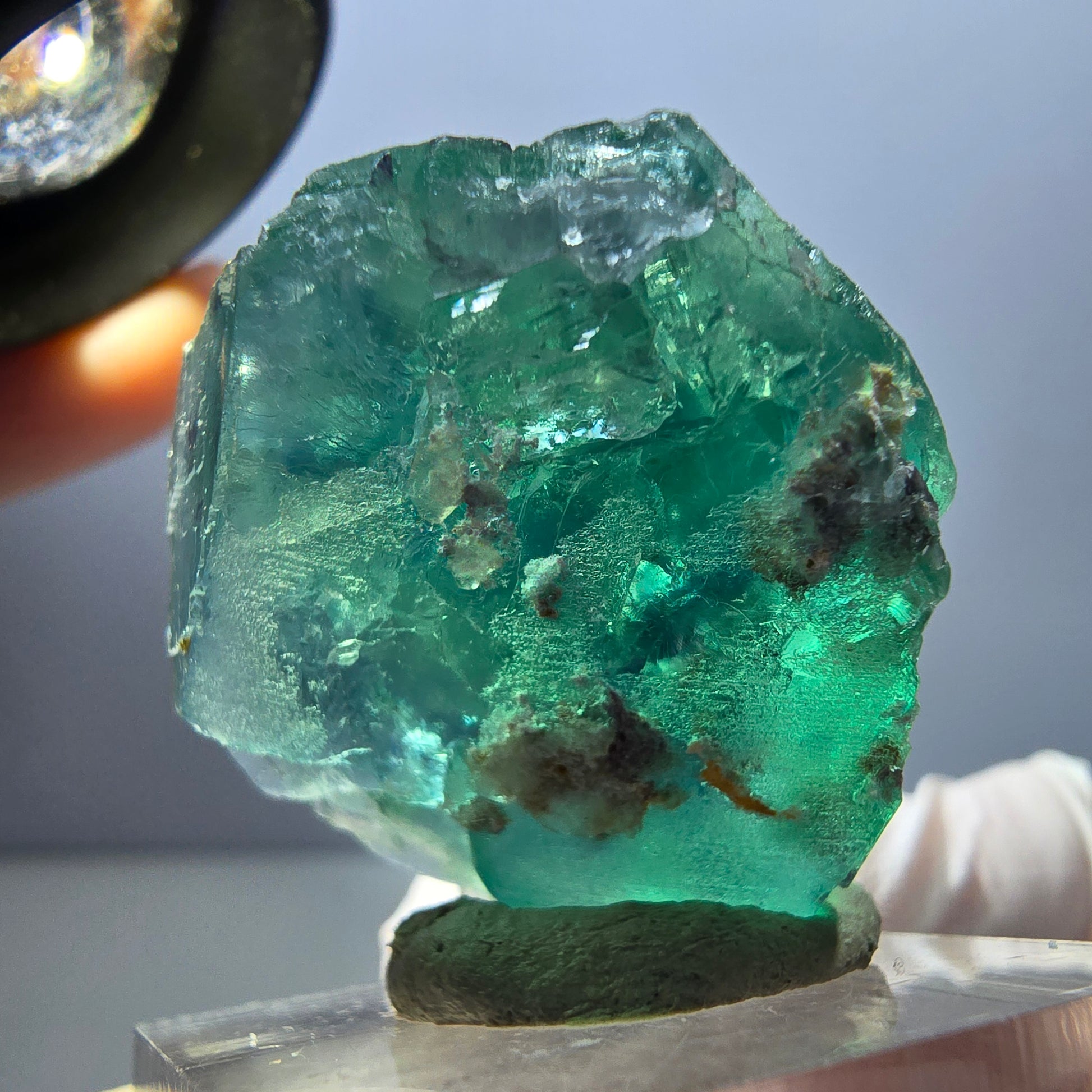 Die grün-transparenten Farbnuancen des Phantoms verleihen diesem Würfel einen magischen Charakter und zeigen eindrucksvoll die geologischen Prozesse, die zur Entstehung solcher Kristalle geführt haben. Mit den kompakten Abmessungen von 27*25*23mm und einem Gewicht von 26g ist dieser Fluorit-Würfel nicht nur ein Blickfang, sondern auch einfach zu handhaben und zu präsentieren.