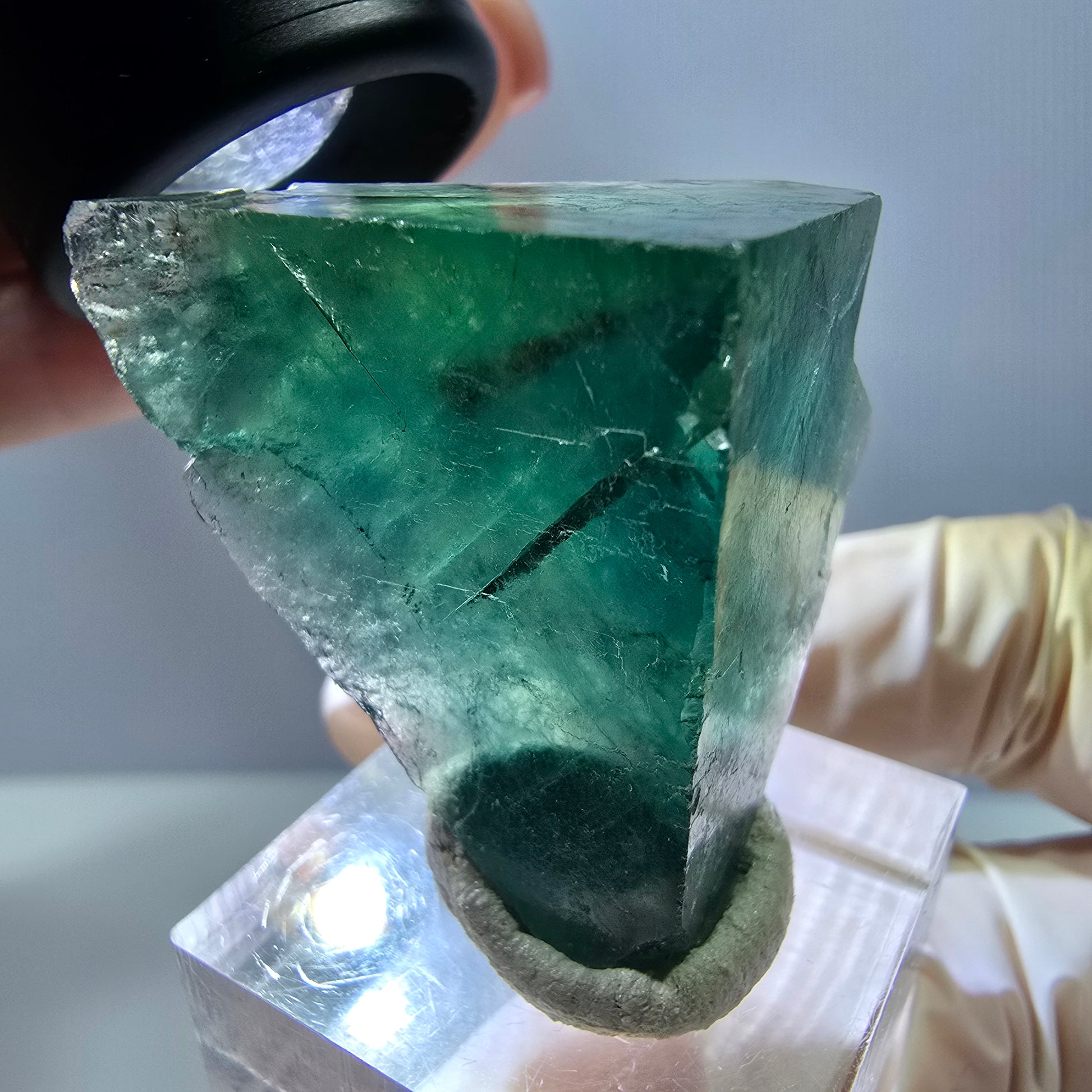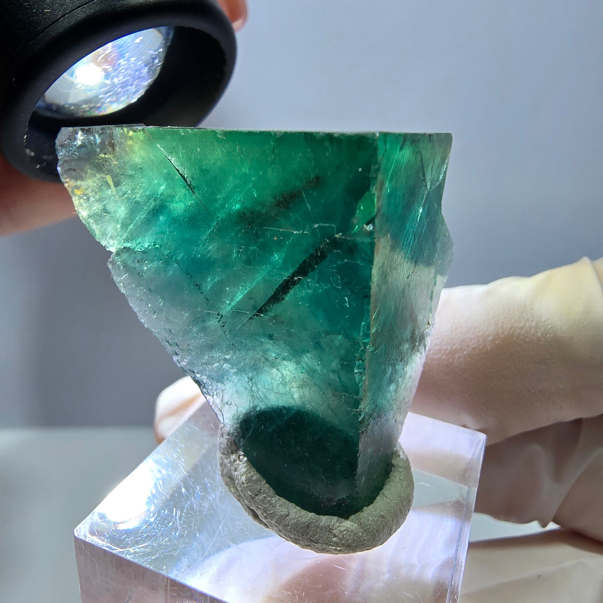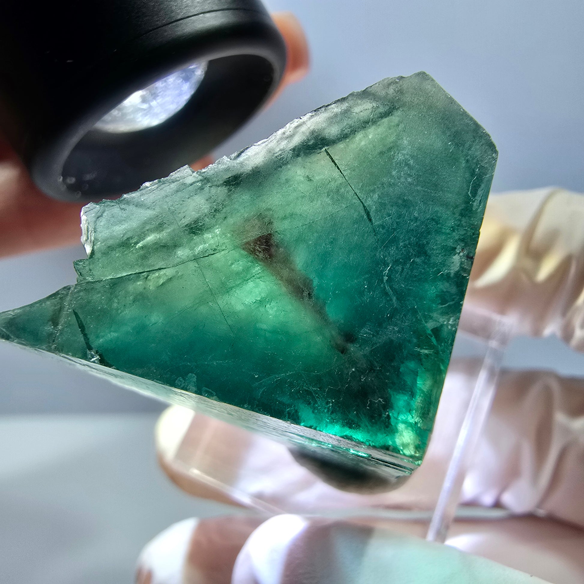 Entdecken Sie den einzigartigen Klaren Phantom Fluorit Würfel, ein faszinierendes Naturprodukt, das sowohl ästhetisch als auch energetisch begeistert. Dieser spezielle Kristall weist eine wunderschöne grüne Transparenz auf und kommt in einer kubischen Form mit parkettierter Oberfläche daher. Die einzigartigen Phantome im Inneren des Würfels sind ein besonders bemerkenswerter Anziehungspunkt und zeugen von der beeindruckenden natürlichen Schönheit der Mineralien.