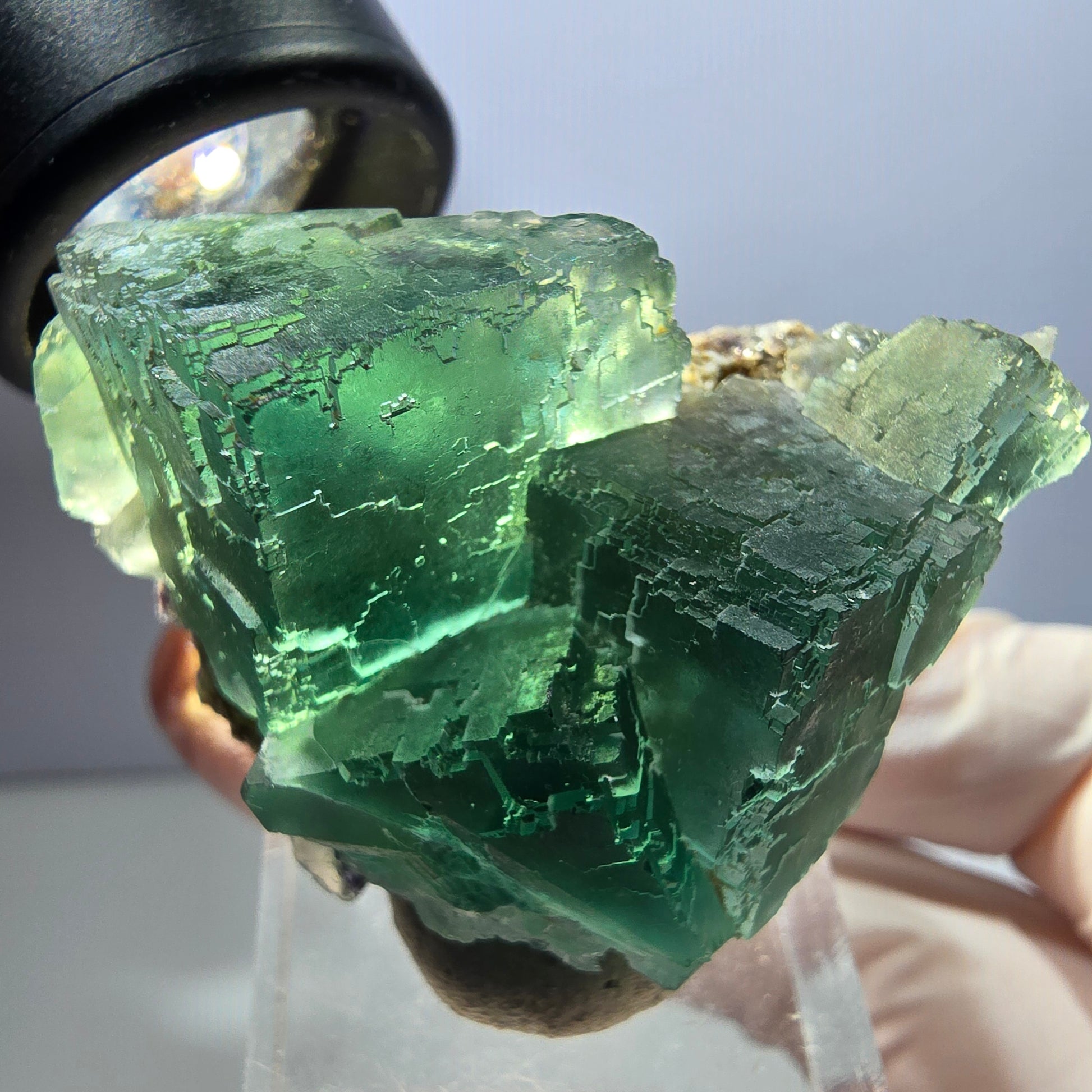 Entdecken Sie den faszinierenden Klaren Phantom Fluorit Würfel, ein wahrhaft beeindruckendes Mineral, das in den Tiefen der Erde geboren wurde. Diese exquisite, in Grün gehaltene Variante besticht durch ihre transparente Oberfläche und die einzigartigen Phantome im Inneren des Kristalls. Mit einer kubischen Kristallform und einer parkettierten Oberfläche zeigt dieser Fluorit seine atemberaubende Schönheit und Struktur.