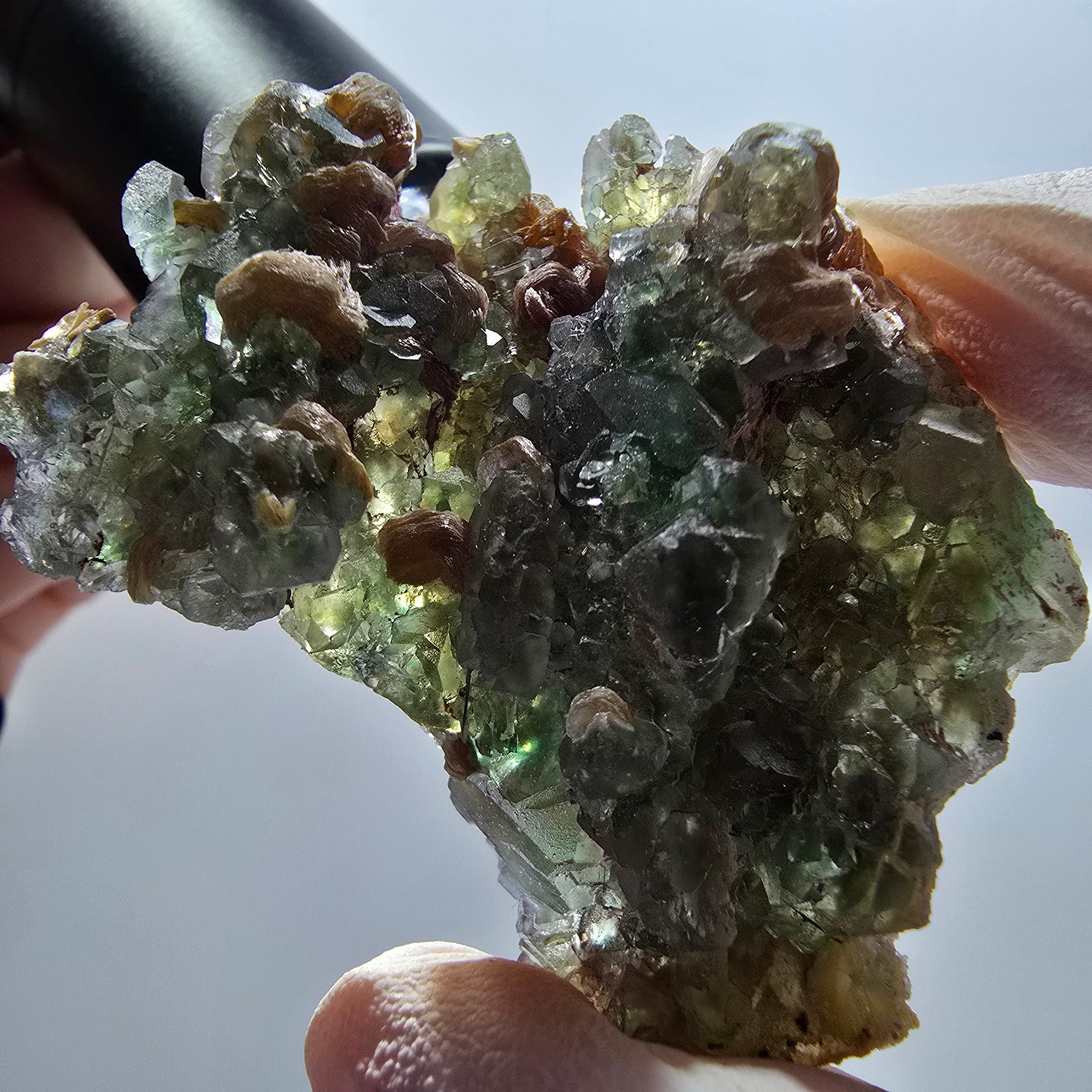 - Mineral: Phantom Fluorit Würfel mit Muskovit und Hyalit