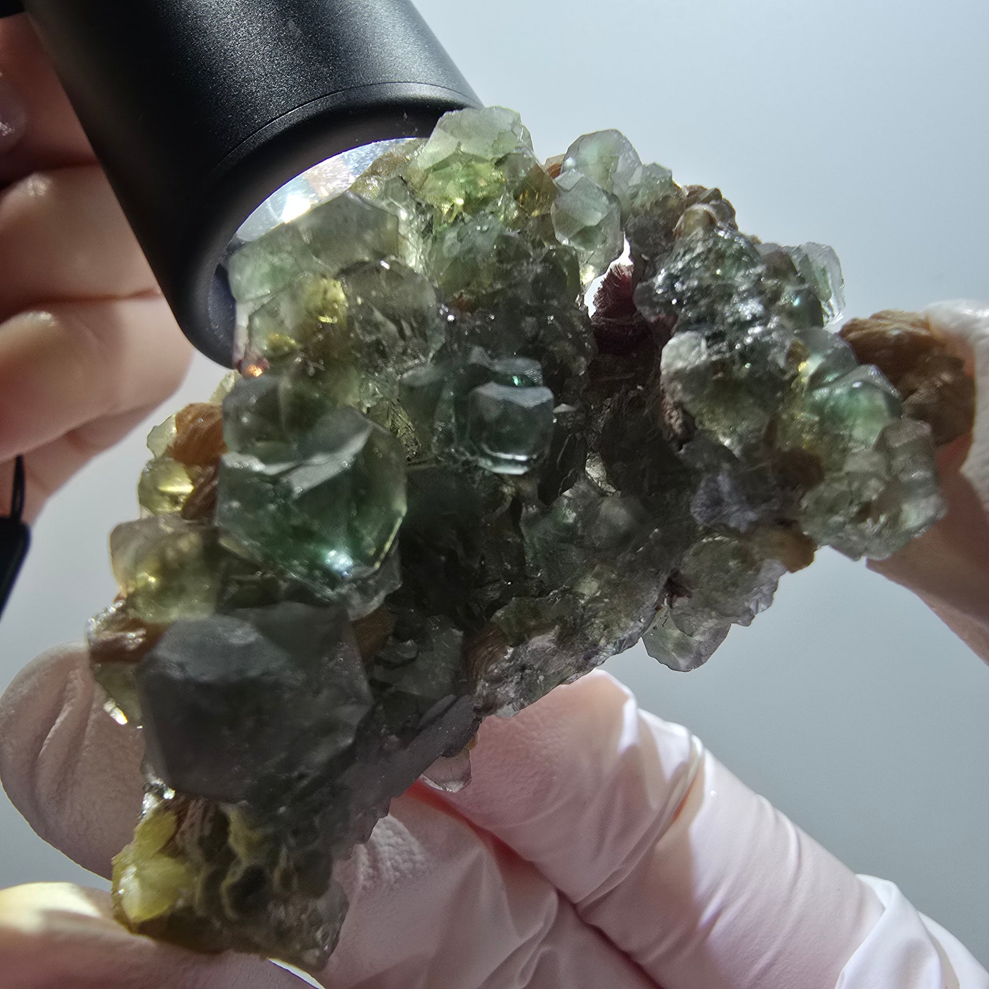 - Besonderheit: Transparente grün-braune Kristalle mit deutlichen Phantomen; UV-aktiver Hyalit (neongelb fluoreszierend)