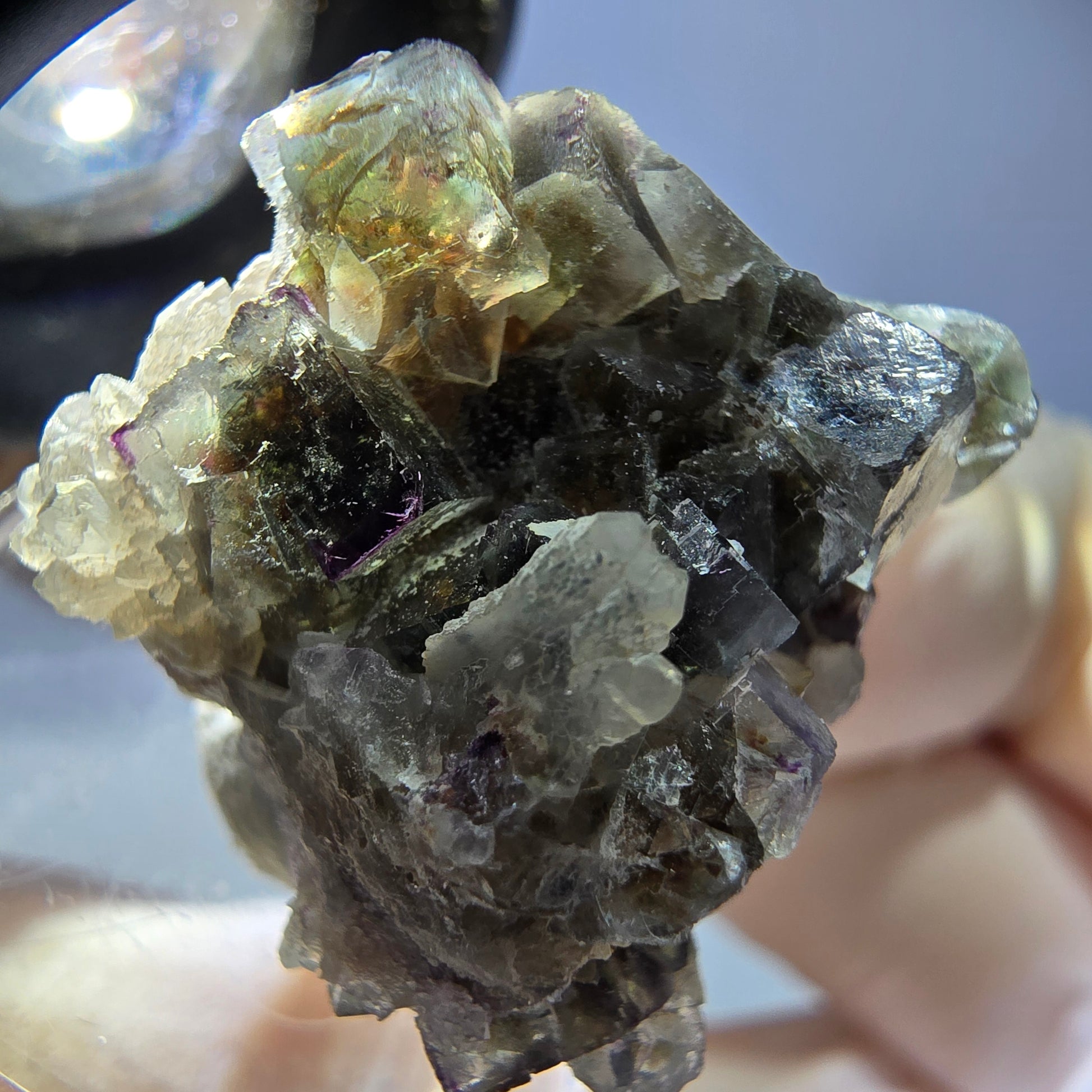 Phantom Fluorit Würfel mit Quarz Stufe