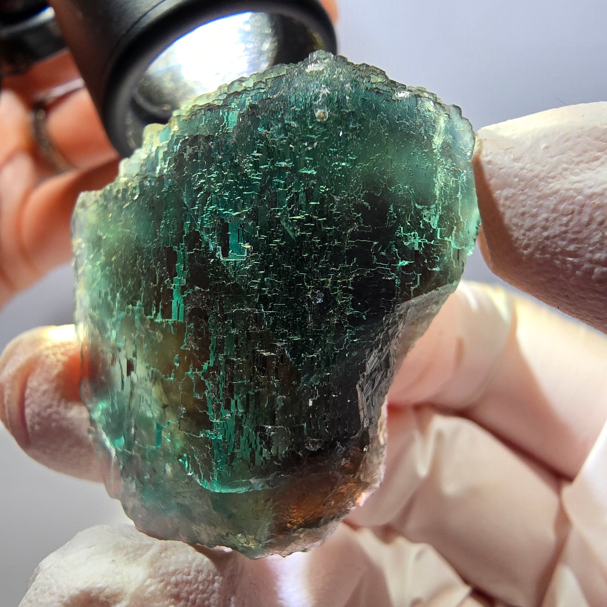 - Seltene grün-braune transparente Fluorit Würfel Stufe