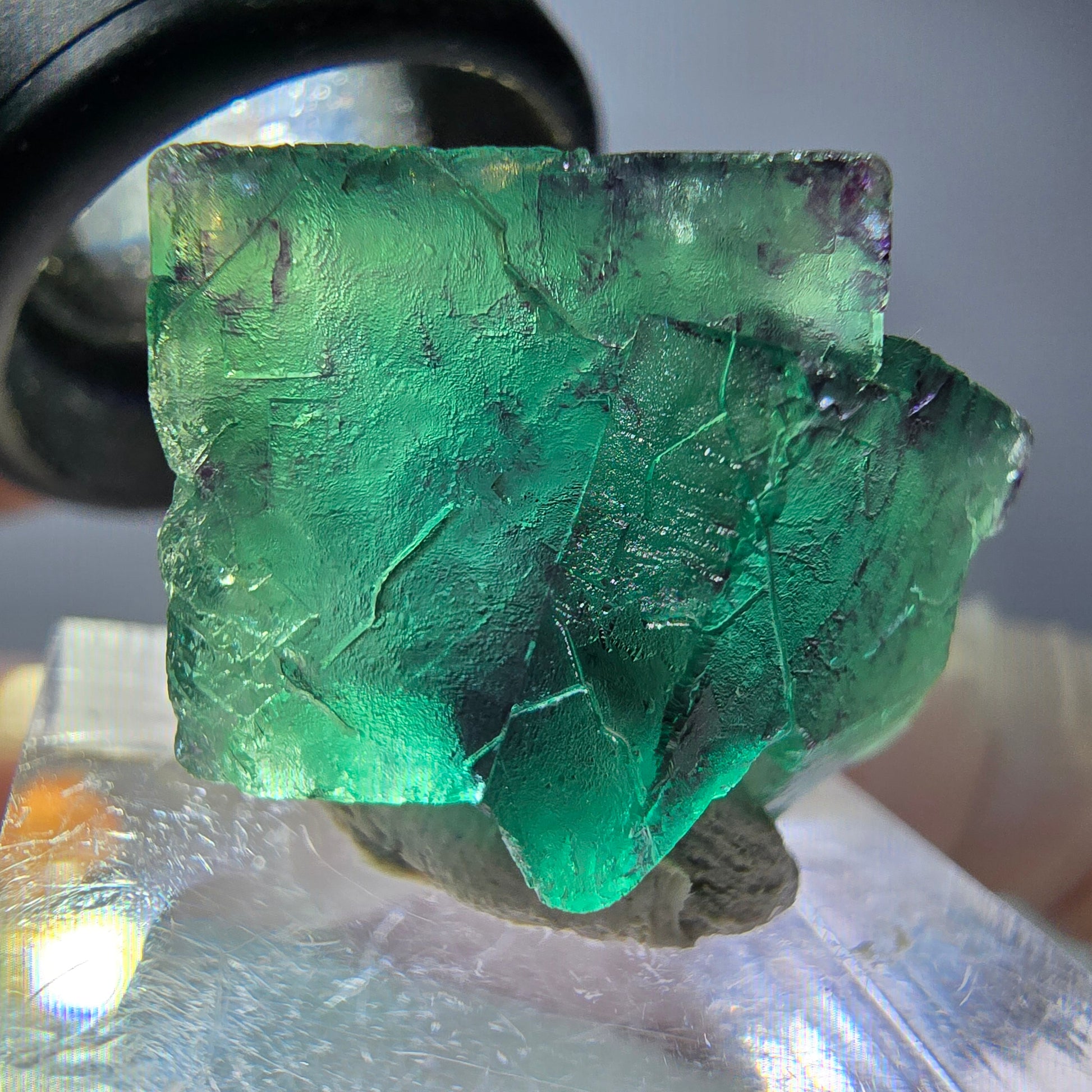 - Seltene grün-lila transparente Fluorit Würfel Stufe