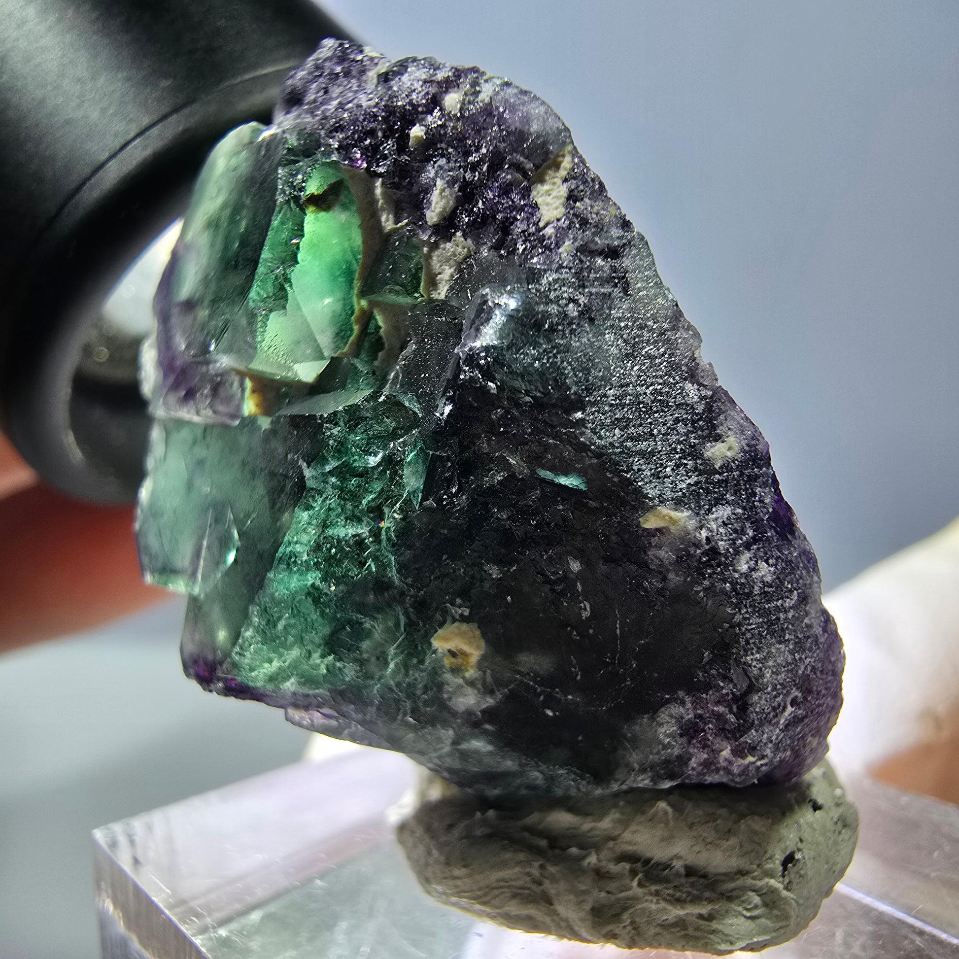 - Seltene grün-lila transparente Fluorit Würfel Stufe