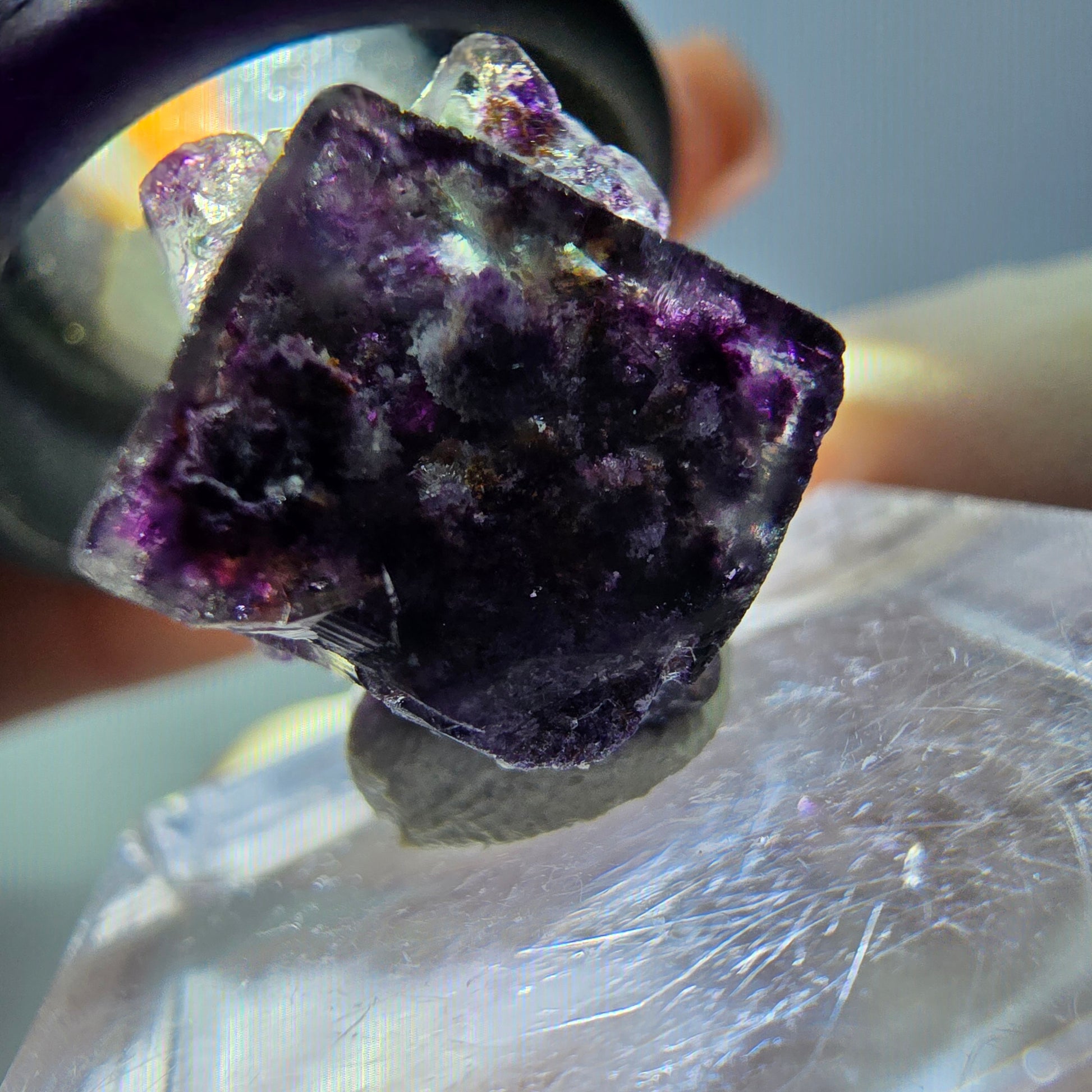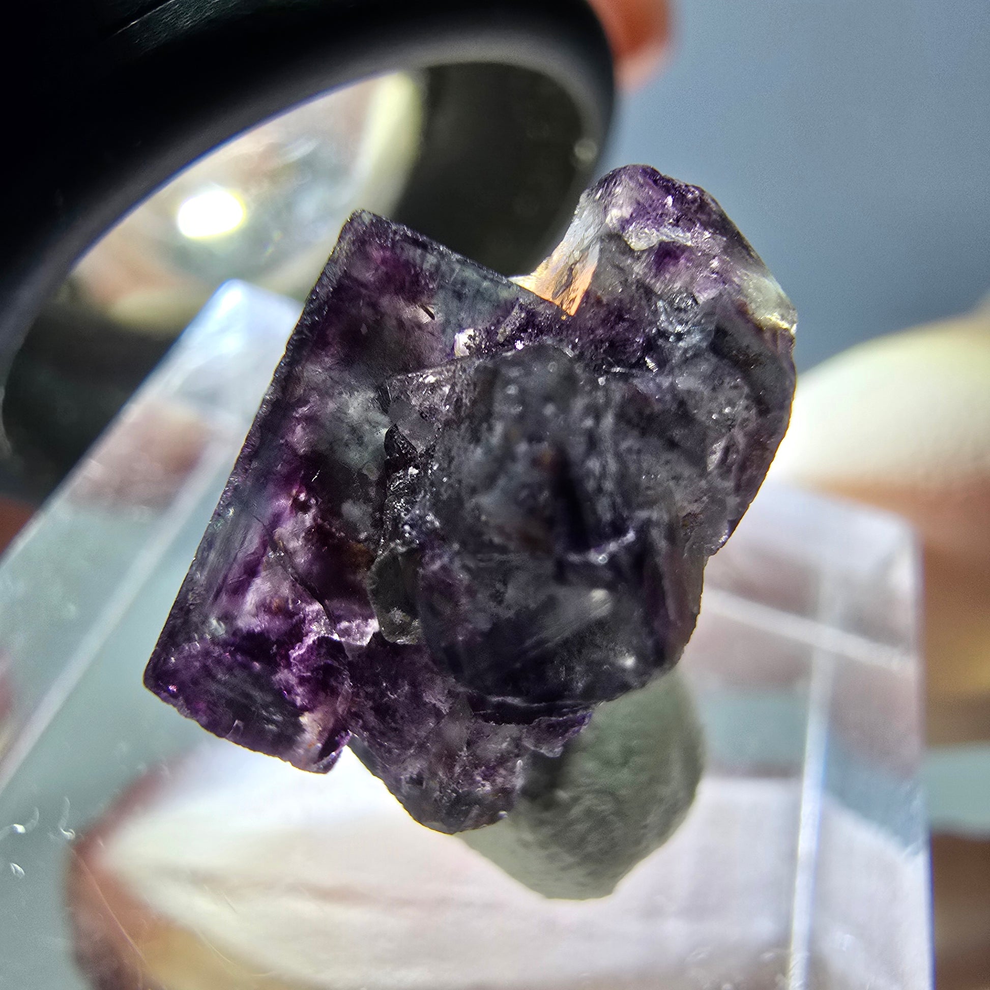 - Seltene grün-lila transparente Fluorit Würfel Stufe