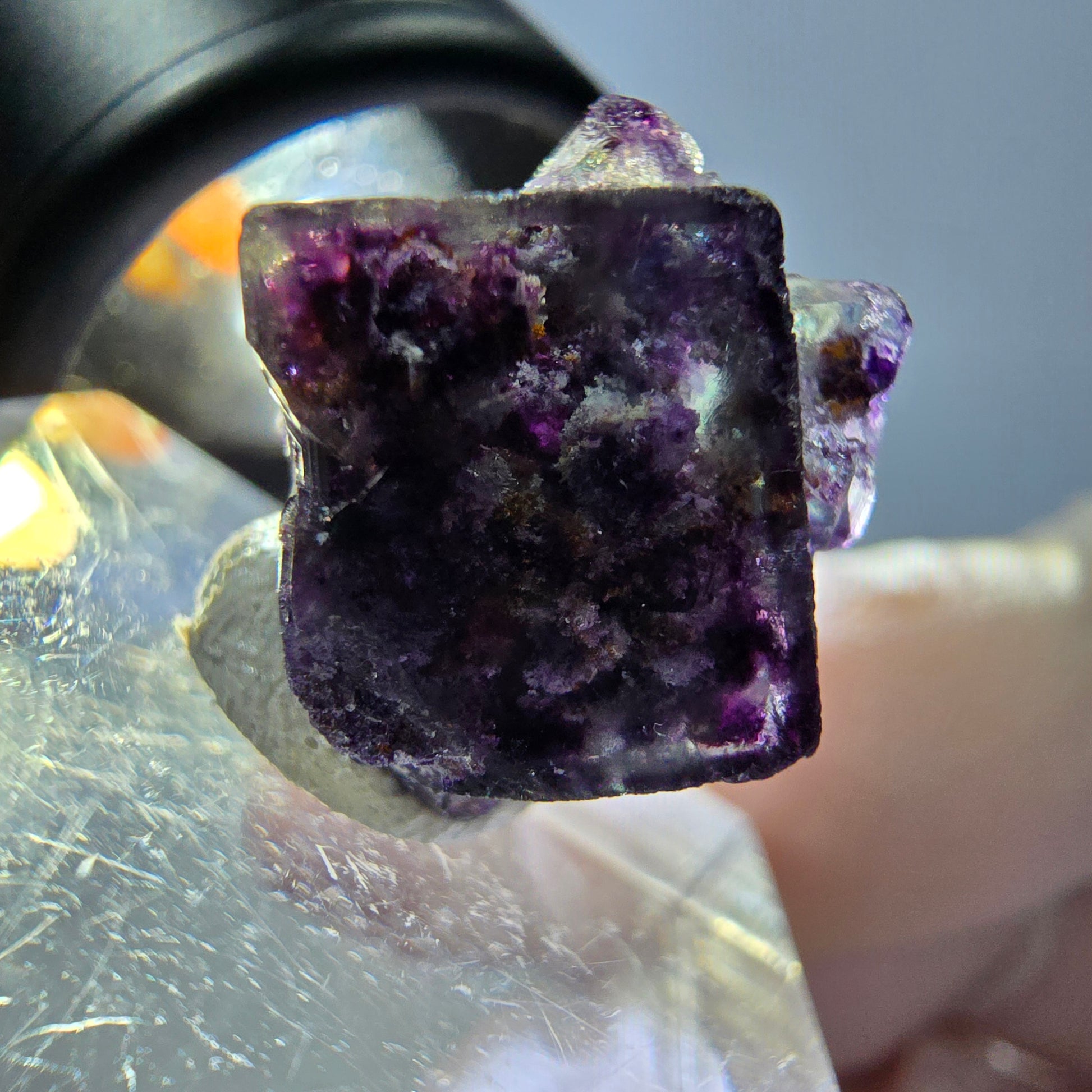 Phantom Fluorit Würfel Stufe, parkettiert grün lila Okorusu, Namibia 15*15*10mm