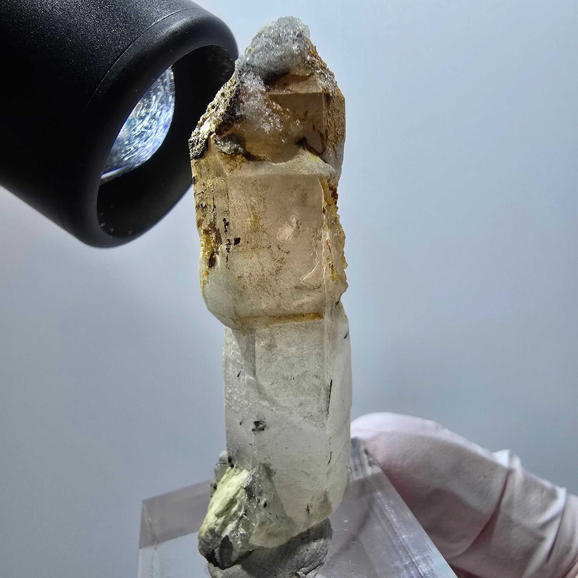 - Mineral: Rauchquarz Zepter mit Hyalit Opal, Schörl Turmalin, Orthoklas