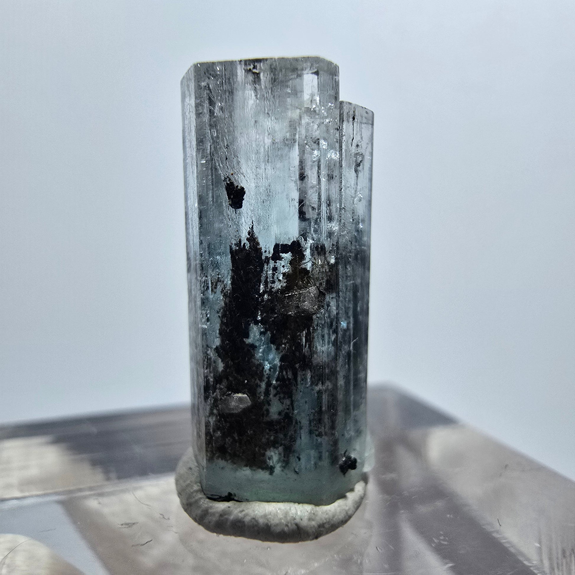 - Farbe: Hellblau transparent mit schwarzen Turmalin-Einwachsungen