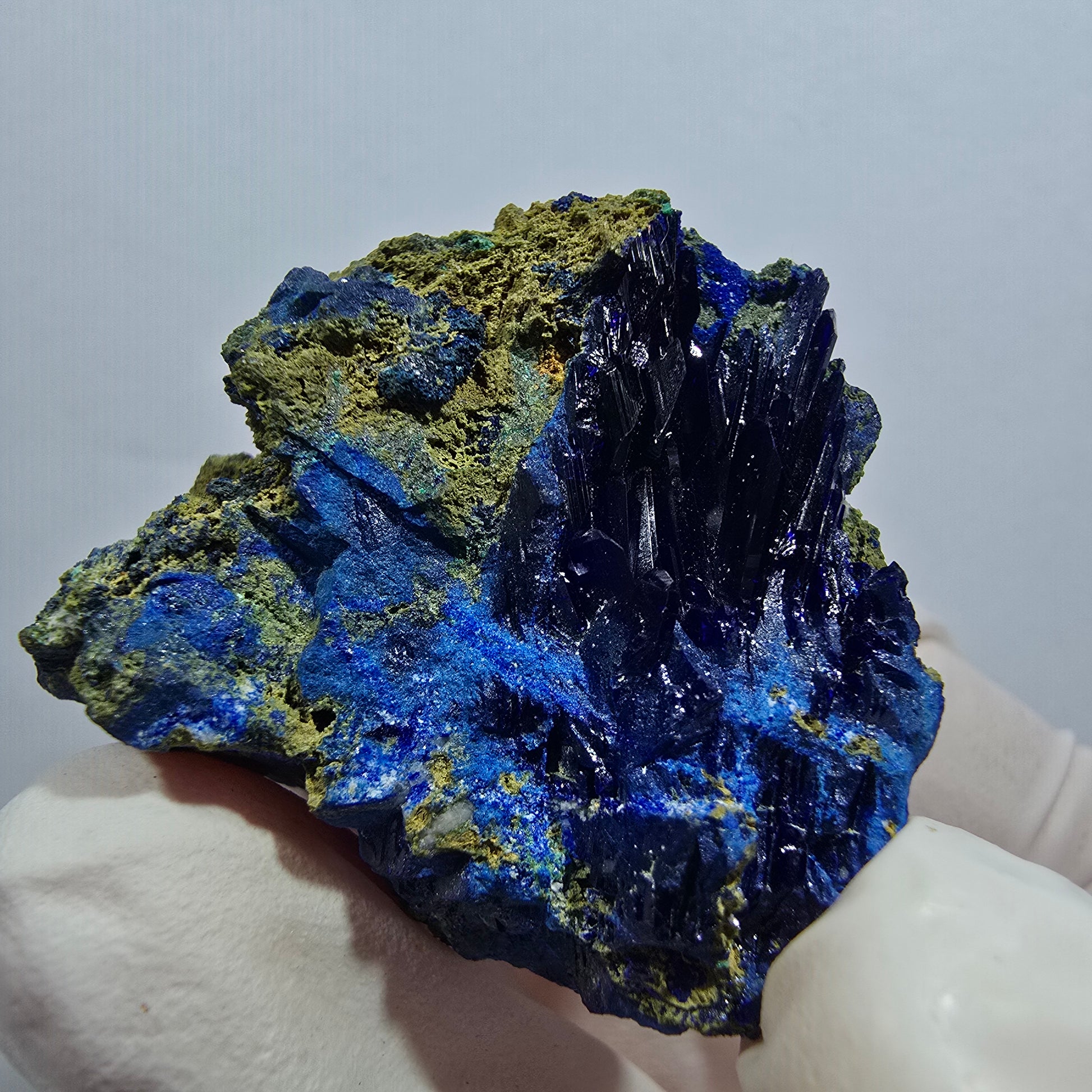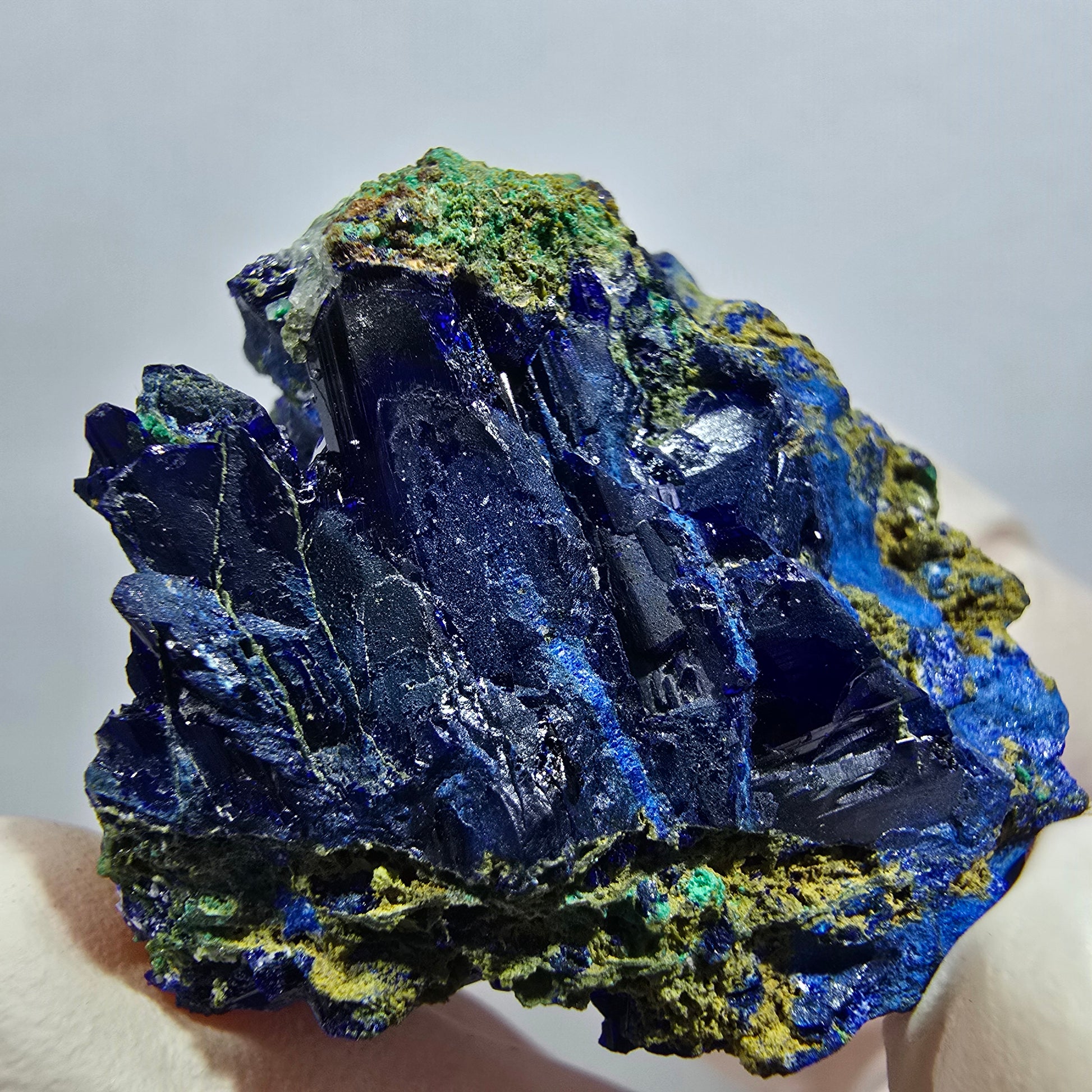 - Besonderheit: Ausgeprägte dunkelblaue Azurit-Kristalle und grüne Malachit-Kristalle